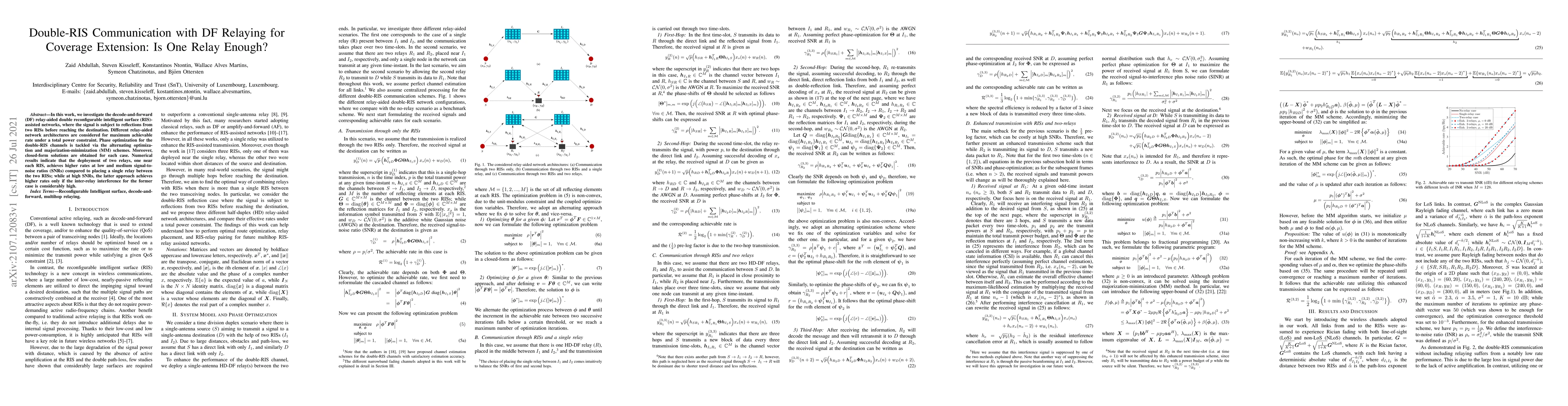 A research paper investigates using double reconfigurable intelligent surfaces (RIS) with decode-and-forward relay-aided networks for maximum achievable rate under a total power constraint. The study finds that deploying two relays near each RIS achieves higher rates at low and medium signal-to noise ratios compared to placing a single relay between the two RISs.