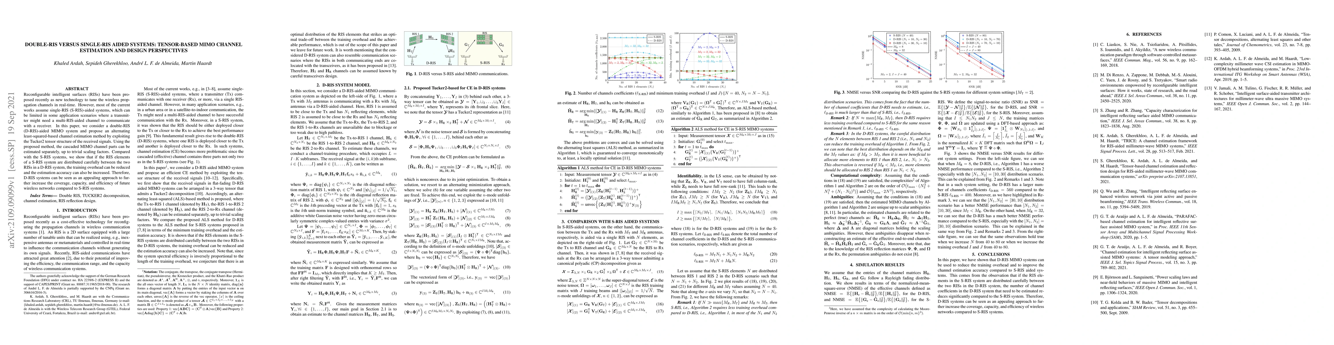 This paper proposes an alternating least-squared-based channel estimation method for double-RIS (D-RIS) aided MIMO systems using Tucker2 tensor structure. It demonstrates that D-RIS systems can reduce training overhead and improve estimation accuracy compared to single-RIS (S-RIS) systems, suggesting enhanced coverage, capacity, and efficiency for future wireless networks.