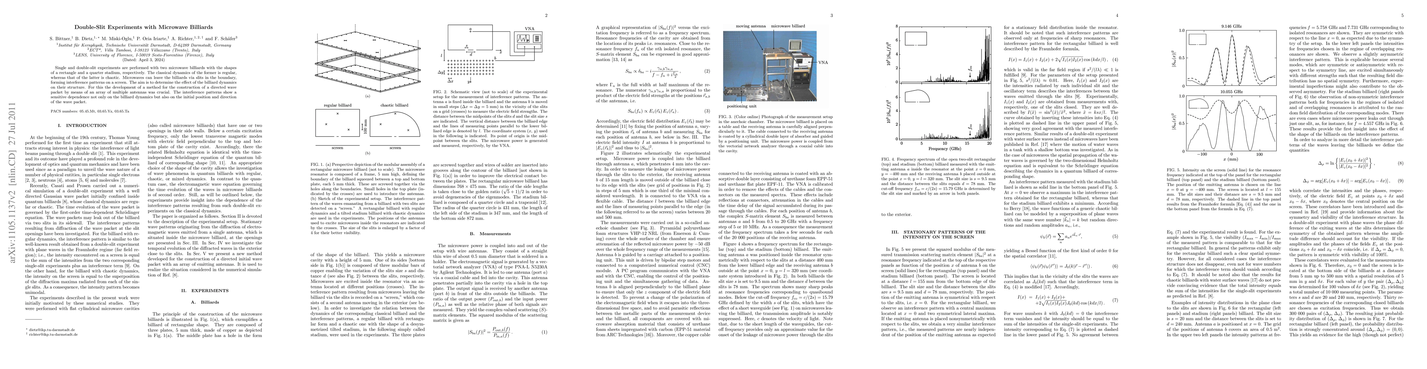 Single and double-slit experiments are performed with two microwave billiards with the shapes of a rectangle, respectively, a quarter stadium. The classical dynamics of the former is regular, that of the latter is chaotic. Microwaves can leave the billiards via slits in the boundary, forming interference patterns on a screen. The aim is to determine the effect of the billiard dynamics on their structure. For this the development of a method for the construction of a directed wave packet by means of an array of multiple antennas was crucial. The interference patterns show a sensitive dependence not only on the billiard dynamics but also on the initial position and direction of the wave packet.