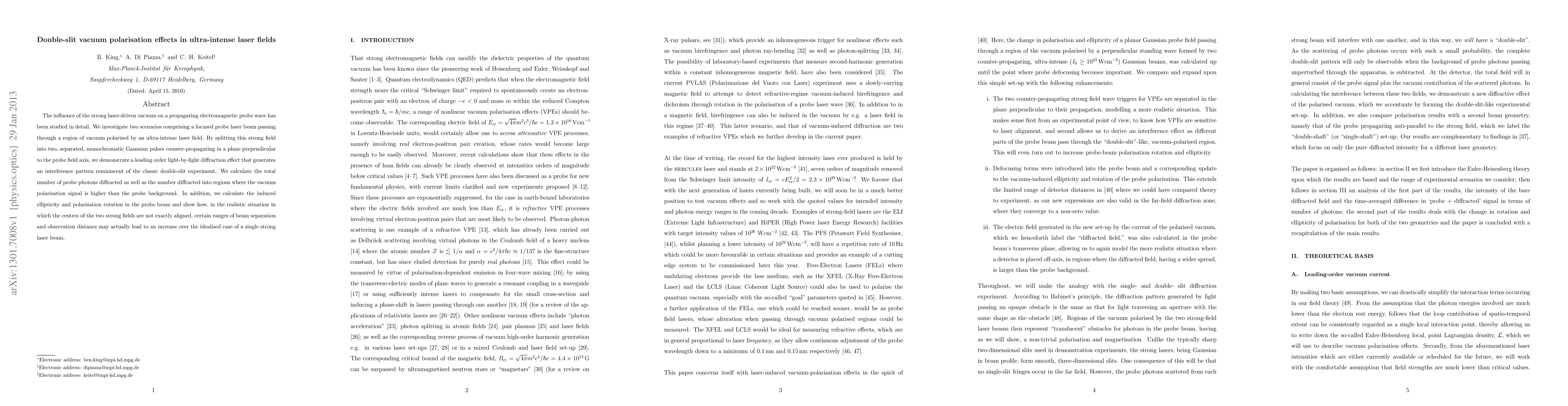 The influence of the strong laser-driven vacuum on a propagating electromagnetic probe wave has been studied in detail. We investigate two scenarios comprising a focused probe laser beam passing through a region of vacuum polarised by an ultra-intense laser field. By splitting this strong field into two, separated, monochromatic Gaussian pulses counter-propagating in a plane perpendicular to the probe field axis, we demonstrate a leading order light-by-light diffraction effect that generates an interference pattern reminiscent of the classic double-slit experiment. We calculate the total number of probe photons diffracted as well as the number diffracted into regions where the vacuum polarisation signal is higher than the probe background. In addition, we calculate the induced ellipticity and polarisation rotation in the probe beam and show how, in the realistic situation in which the centres of the two strong fields are not exactly aligned, certain ranges of beam separation and observation distance may actually lead to an increase over the idealised case of a single strong laser beam.