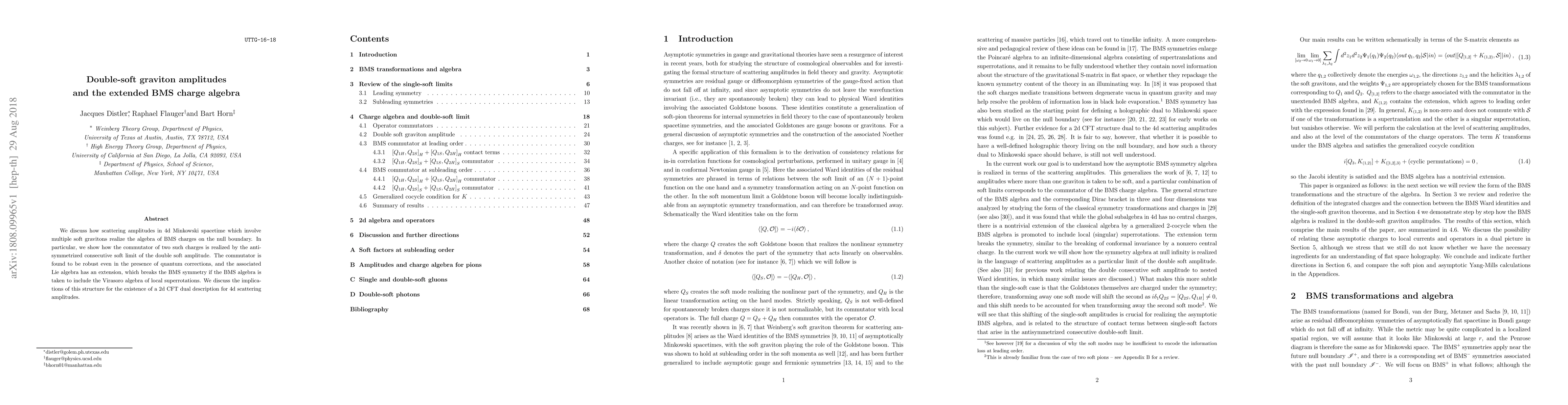 The paper presents a detailed analysis of how double-soft graviton amplitudes encode the commutator of BMS charges, extending the understanding of BMS symmetry in gravitational theories.