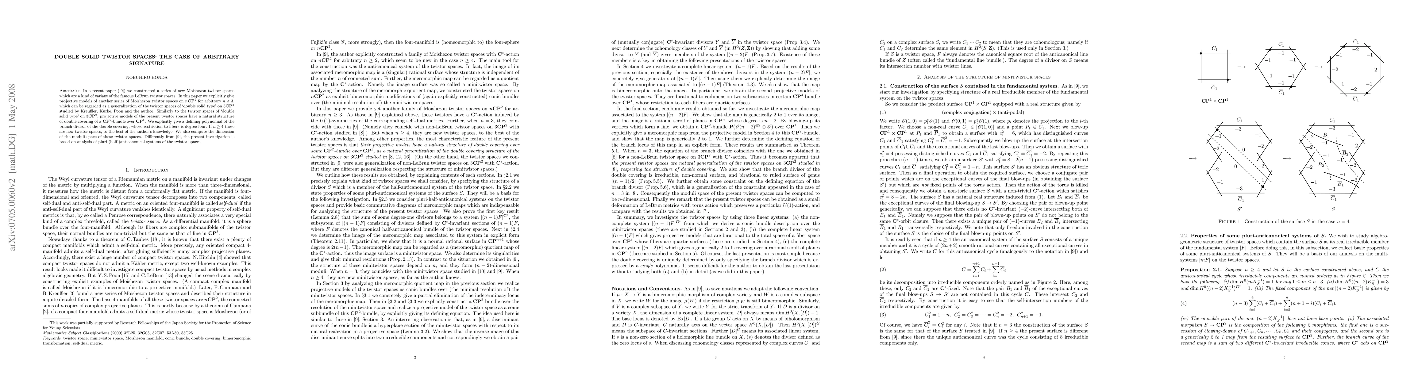 This paper constructs projective models of new Moishezon twistor spaces on nCP^2 for arbitrary n>2, generalizing 'double solid type' twistor spaces on 3CP^2. The twistor spaces feature a double covering structure of a CP^2-bundle over CP^1, with degree four branch divisors for n>3.