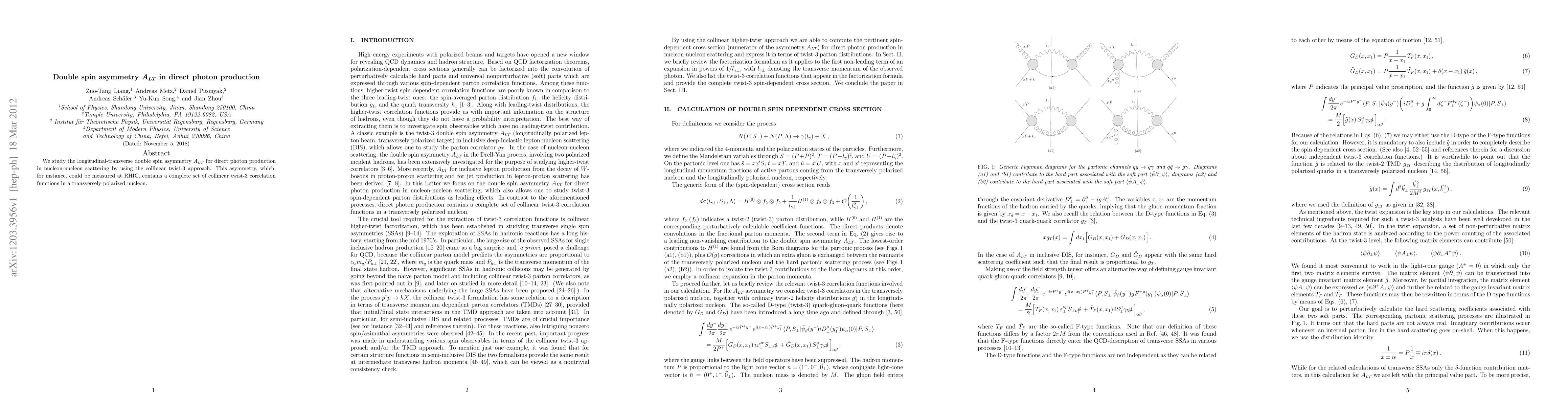 This paper investigates the longitudinal-transverse double spin asymmetry $A_{LT}$ in direct photon production during nucleon-nucleon scattering, employing a collinear twist-3 approach. This asymmetry, measurable at RHIC, reveals a complete set of collinear twist-3 correlation functions in a transversely polarized nucleon.