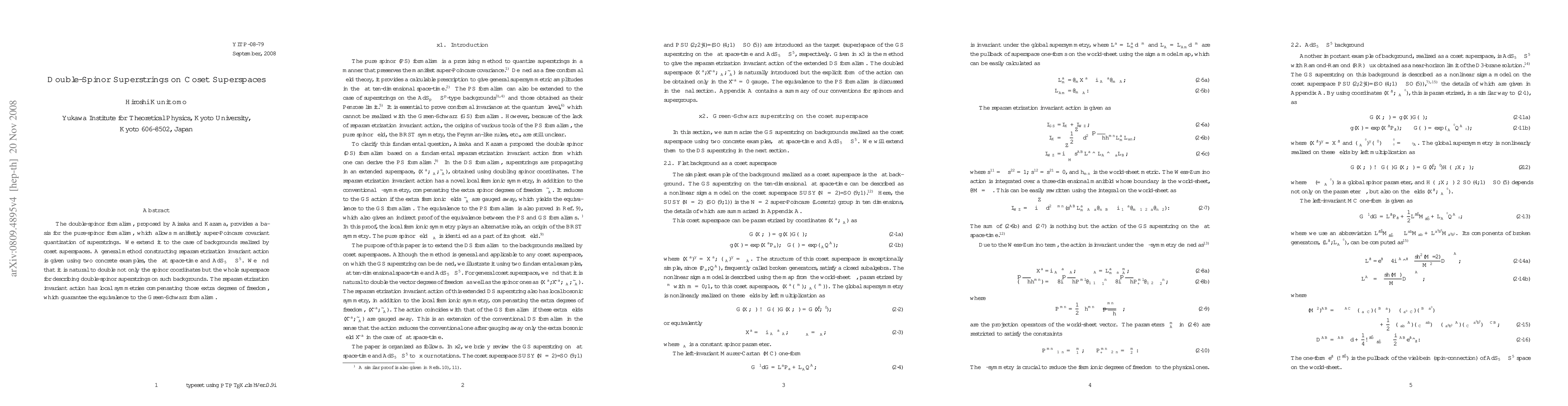 This paper develops a double-spinor formalism for superstring quantization on coset superspace backgrounds, demonstrating reparametrization invariant actions for flat space-time and AdS(5)xS(5). It shows that doubling both spinor coordinates and the entire superspace maintains equivalence to the Green-Schwarz formalism.