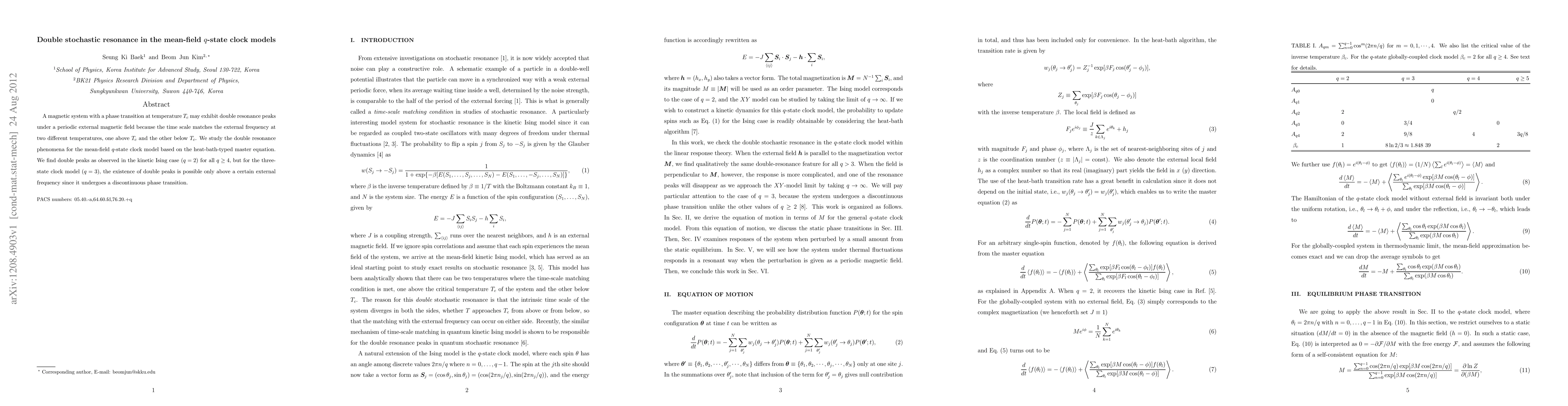 This paper investigates double stochastic resonance in mean-field $q$-state clock models, finding double peaks for $q\ge 4$ at two different temperatures. For $q=3$, double peaks occur only above a certain frequency due to a discontinuous phase transition.