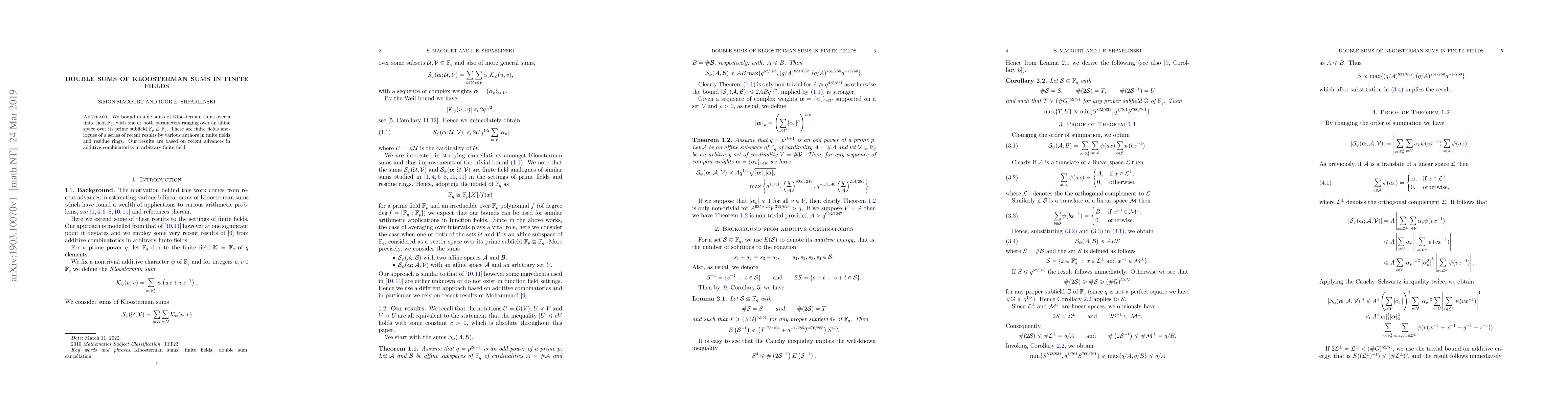 Summary: This paper provides bounds for double sums of Kloosterman sums over finite fields ${\mathbb F}_{q}$, utilizing recent advances in additive combinatorics to achieve results analogous to those found in residue rings, with parameters spanning affine spaces over ${\mathbb F}_p$.