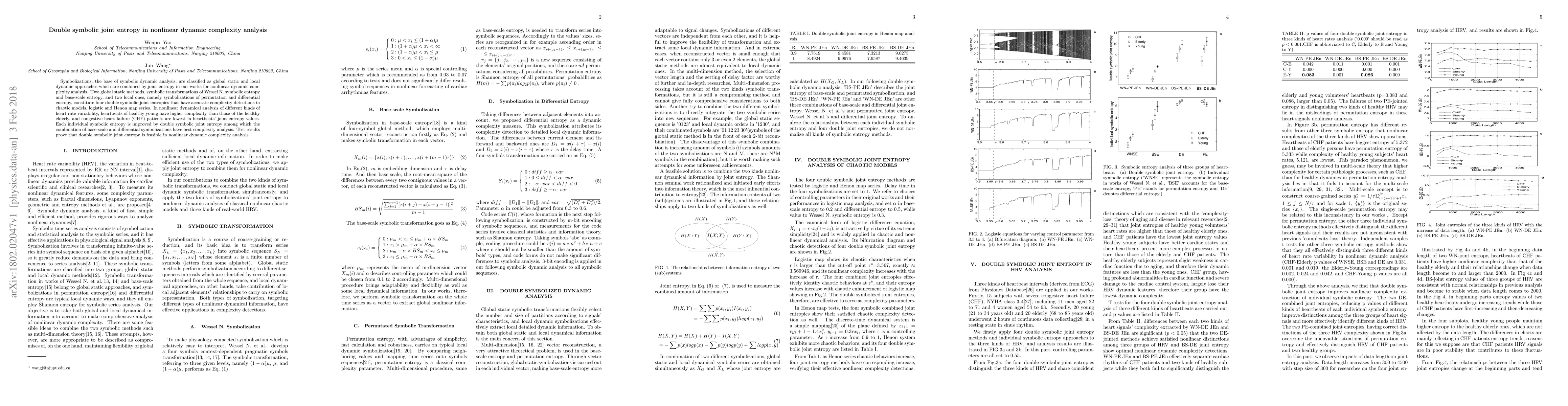 The paper proposes a double symbolic joint entropy approach that combines global static and local dynamic symbolic transformations, enhancing nonlinear complexity extraction in time series analysis.