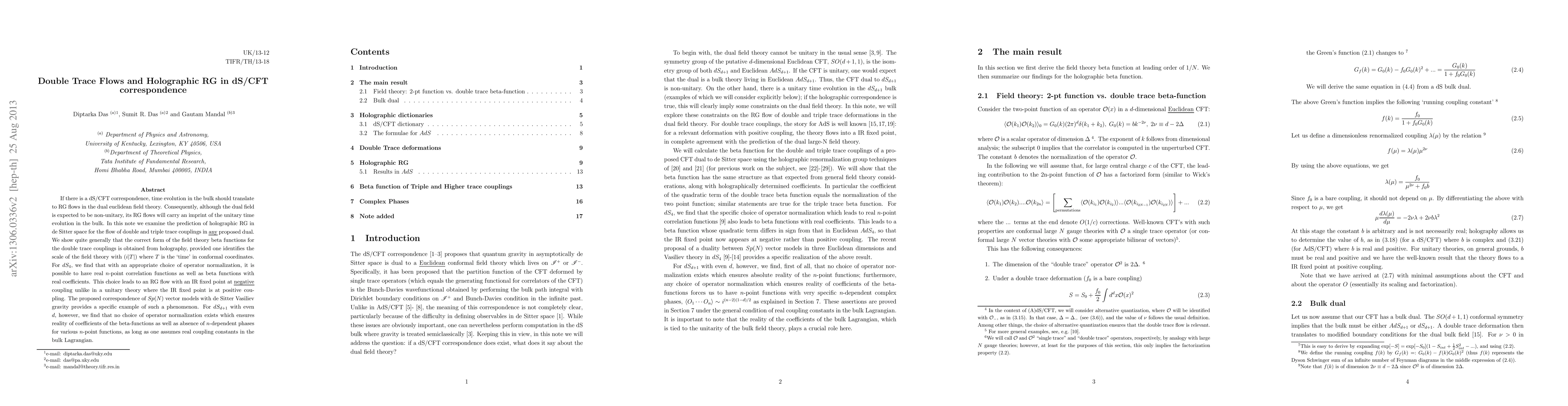 This paper explores the dS/CFT correspondence and predicts holographic renormalization group (RG) flows in de Sitter (dS) space for double and triple trace couplings. It shows that holography correctly determines the beta functions for double trace couplings when identifying the field theory scale with conformal time, leading to an IR fixed point at negative coupling in dS(4). However, for even-dimensional dS spaces, no normalization ensures real beta-function coefficients and real n-point functions without complex phases.
