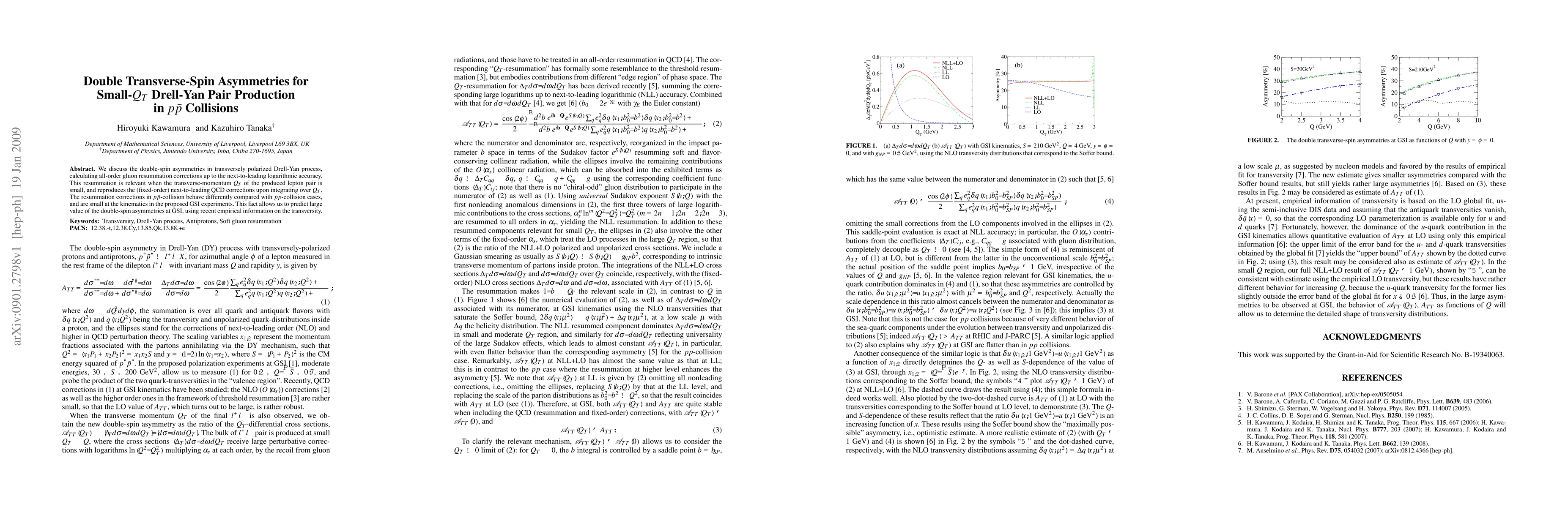 We discuss the double-spin asymmetries in transversely polarized Drell-Yan process, calculating all-order gluon resummation corrections up to the next-to-leading logarithmic accuracy. This resummation is relevant when the transverse-momentum $Q_T$ of the produced lepton pair is small, and reproduces the (fixed-order) next-to-leading QCD corrections upon integrating over $Q_T$. The resummation corrections in $p\bar{p}$-collision behave differently compared with $pp$-collision cases, and are small at the kinematics in the proposed GSI experiments. This fact allows us to predict large value of the double-spin asymmetries at GSI, using recent empirical information on the transversity.