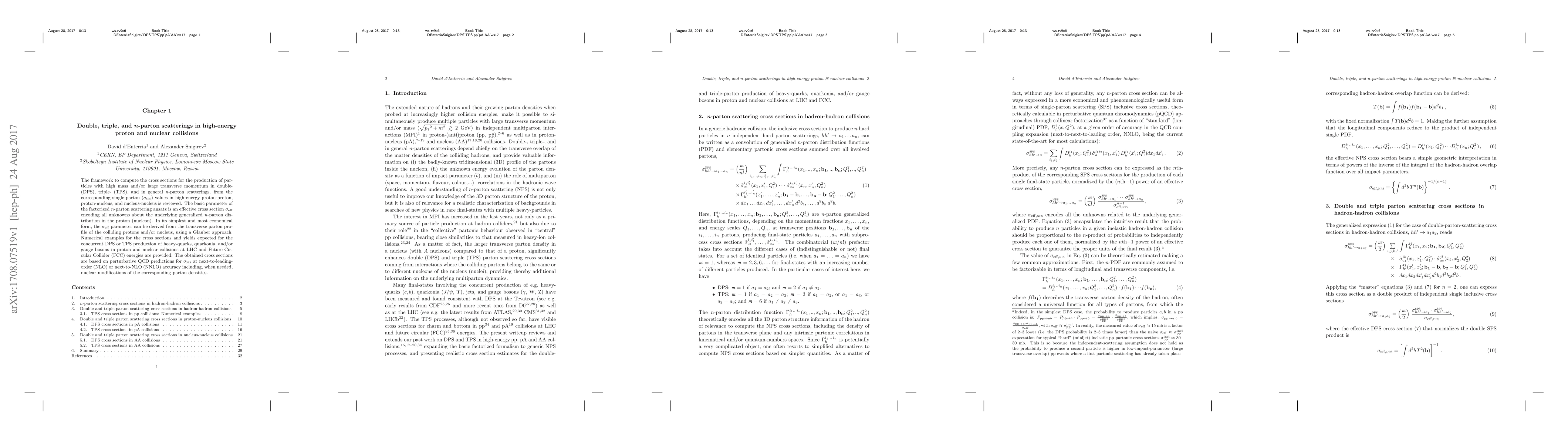 The paper reviews the framework for computing cross sections of high-mass/large transverse momentum particle production in double-, triple-, and n-parton scatterings in high-energy proton and nuclear collisions, using an effective cross section parameter σeff.
