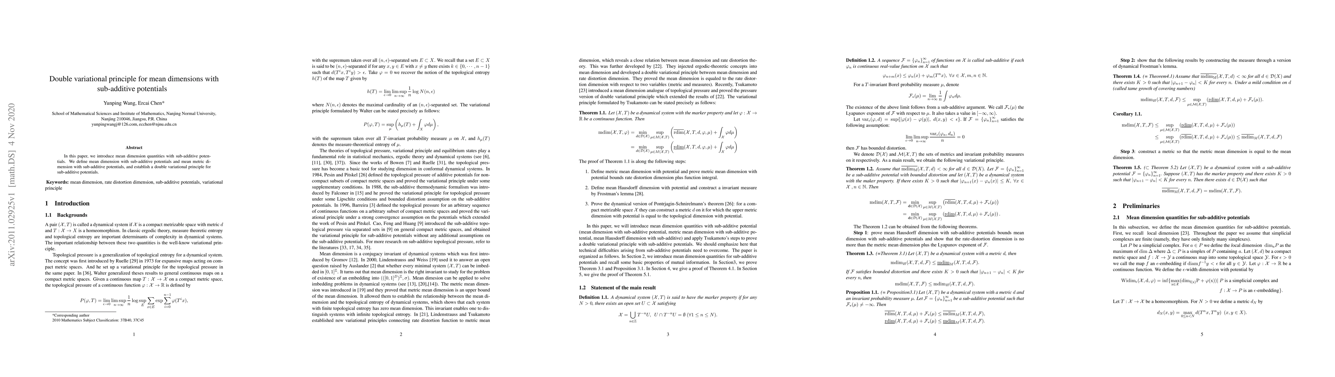 Summary: This paper defines mean dimension and mean metric dimension with sub-additive potentials and establishes a double variational principle for these quantities. The variational principle provides a comprehensive framework for understanding these new dimensional measures.