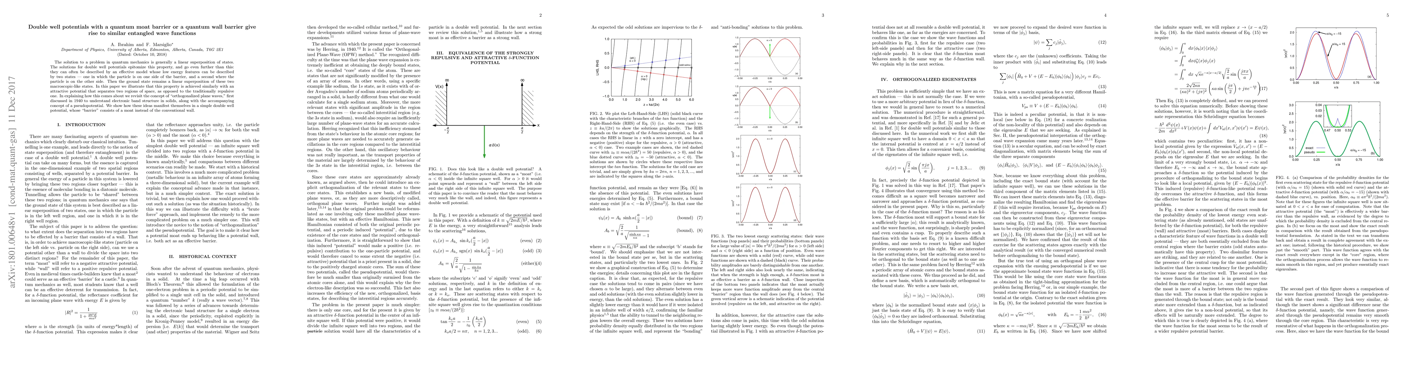 The solution to a problem in quantum mechanics is generally a linear superposition of states. The solutions for double well potentials epitomize this property, and go even further than this: they can often be described by an effective model whose low energy features can be described by two states --- one in which the particle is on one side of the barrier, and a second where the particle is on the other side. Then the ground state remains a linear superposition of these two macroscopic-like states. In this paper we illustrate that this property is achieved similarly with an attractive potential that separates two regions of space, as opposed to the traditionally repulsive one. In explaining how this comes about we revisit the concept of "orthogonalized plane waves," first discussed in 1940 to understand electronic band structure in solids, along with the accompanying concept of a pseudopotential. We show how these ideas manifest themselves in a simple double well potential, whose "barrier" consists of a moat instead of the conventional wall.