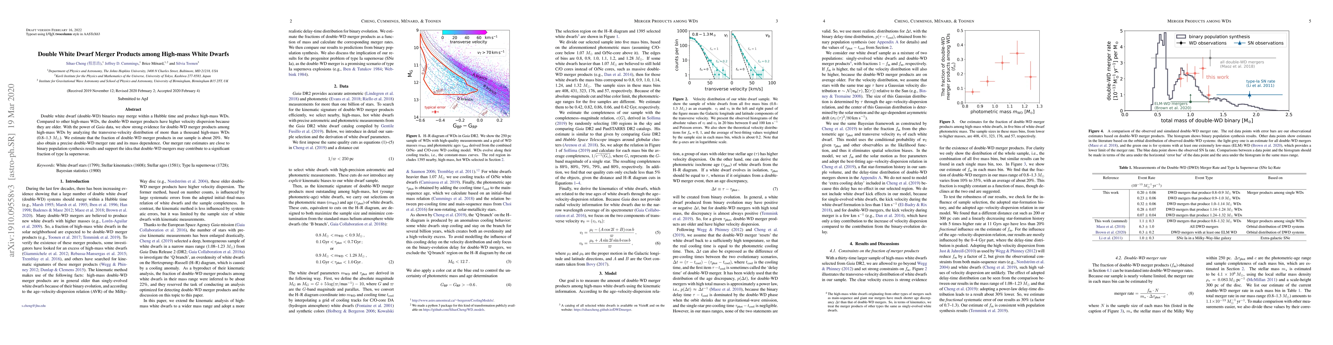 This paper identifies double white dwarf merger products among high-mass white dwarfs using Gaia data, finding that about 20% of high-mass WDs (0.8--1.3 $M_\odot$) are merger products, which exhibit higher velocity dispersion due to their age. The study also estimates a precise merger rate and supports the notion that these mergers contribute significantly to type Ia supernovae.