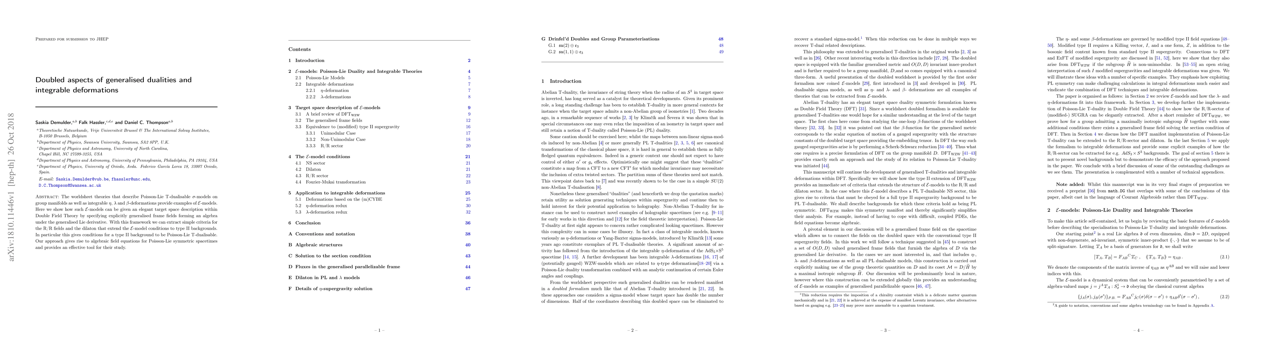 The worldsheet theories that describe Poisson-Lie T-dualisable $\sigma$-models on group manifolds as well as integrable $\eta$, $\lambda$ and $\beta$-deformations provide examples of ${\cal E}$-models. Here we show how such ${\cal E}$-models can be given an elegant target space description within Double Field Theory by specifying explicitly generalised frame fields forming an algebra under the generalised Lie derivative. With this framework we can extract simple criteria for the R/R fields and the dilaton that extend the ${\cal E}$-model conditions to type II backgrounds. In particular this gives conditions for a type II background to be Poisson-Lie T-dualisable. Our approach gives rise to algebraic field equations for Poisson-Lie symmetric spacetimes and provides an effective tool for their study.