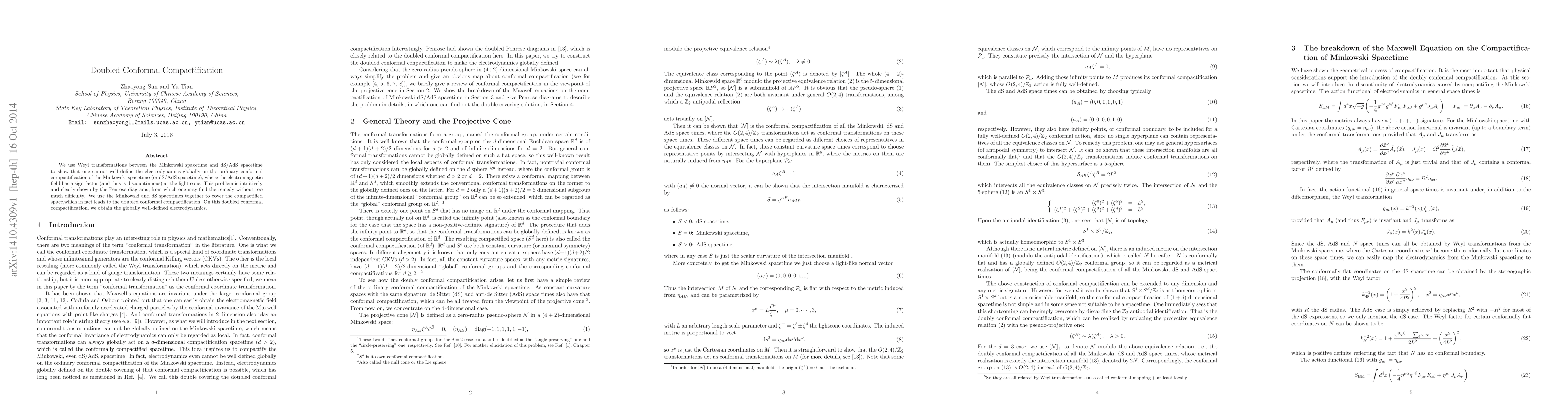 The paper demonstrates that electrodynamics cannot be globally defined on the standard conformal compactification of Minkowski or dS/AdS spacetimes due to discontinuities at the light cone. The solution involves a doubled conformal compactification using both Minkowski and dS spacetimes, which allows for a globally well-defined electrodynamics.