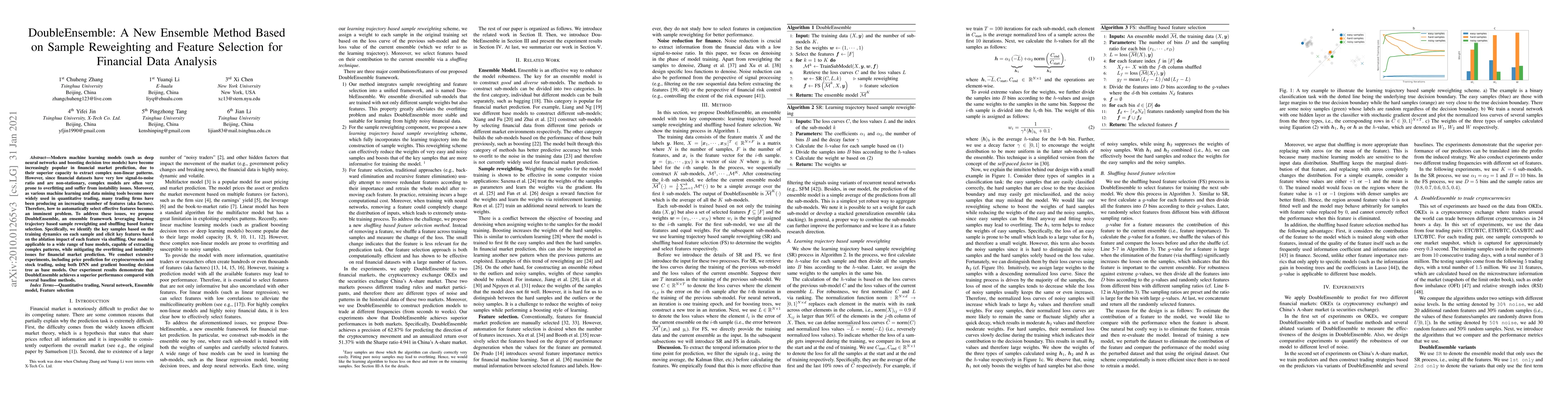 A new ensemble method called DoubleEnsemble improves financial market prediction by mitigating overfitting and instability issues through sample reweighting and feature selection.
