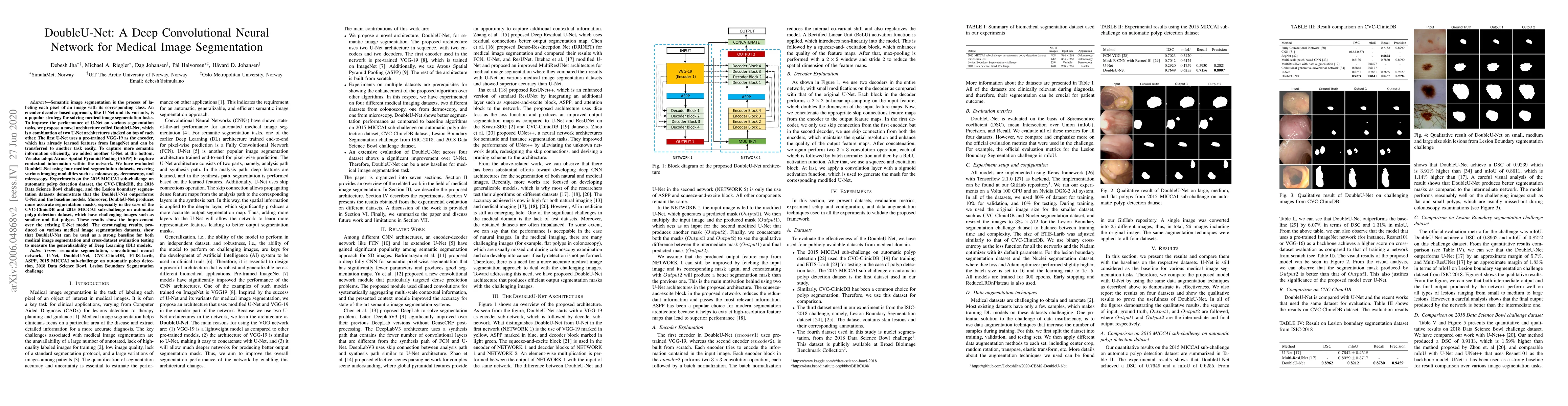 DoubleU-Net combines two stacked U-Net architectures with a pre-trained VGG-19 encoder and Atrous Spatial Pyramid Pooling to enhance medical image segmentation. It outperforms U-Net and baseline models across diverse datasets, demonstrating improved accuracy and generalizability.