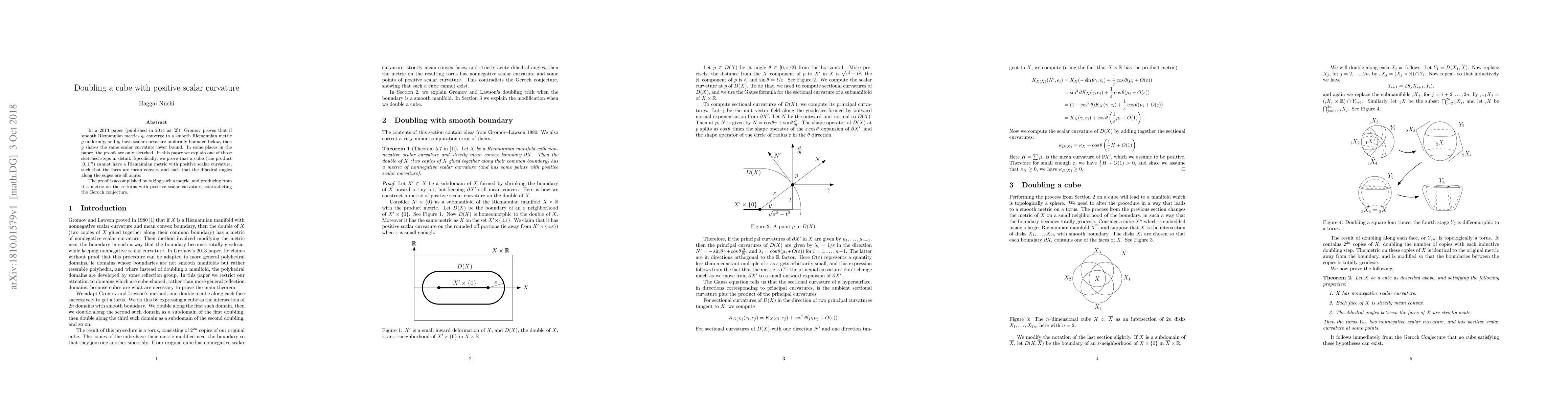 In a 2013 paper, Gromov proves that if smooth Riemannian metrics $g_i$ converge to a smooth Riemannian metric $g$ uniformly, and $g_i$ have scalar curvature uniformly bounded below, then $g$ shares the same scalar curvature lower bound. In some places in the paper, the proofs are only sketched. In this paper we explain one of those sketched steps in detail. Specifically, we prove that a cube (the product $[0,1]^n$) cannot have a Riemannian metric with positive scalar curvature, such that the faces are mean convex, and such that the dihedral angles along the edges are all acute. The proof is accomplished by taking such a metric, and producing from it a metric on the $n$-torus with positive scalar curvature, contradicting the Geroch conjecture.