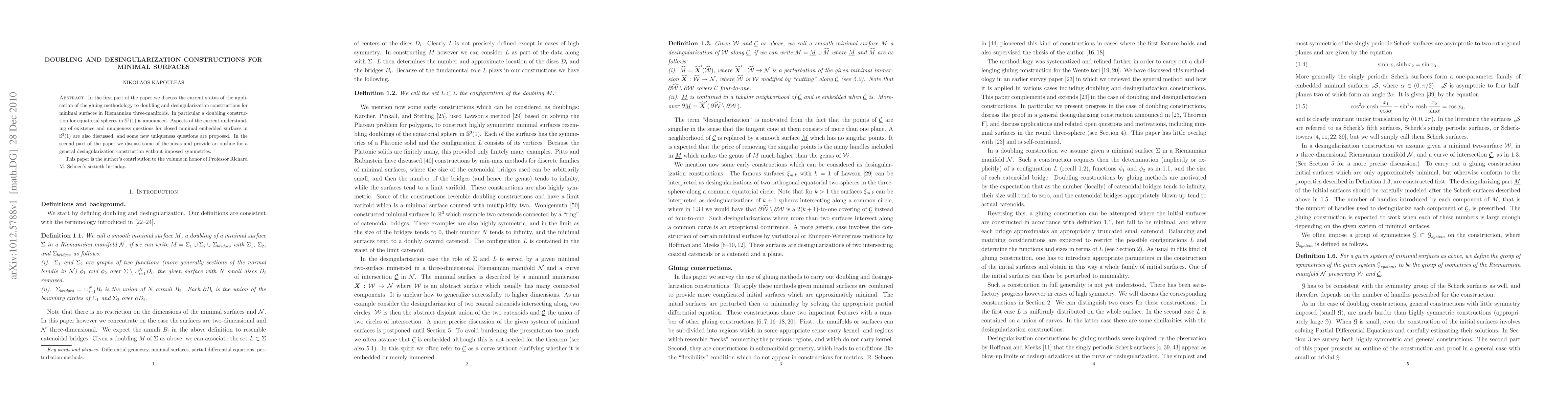 A research paper discusses new constructions for minimal surfaces in Riemannian three-manifolds, proposing a doubling construction for equatorial spheres and outlining a general desingularization method.