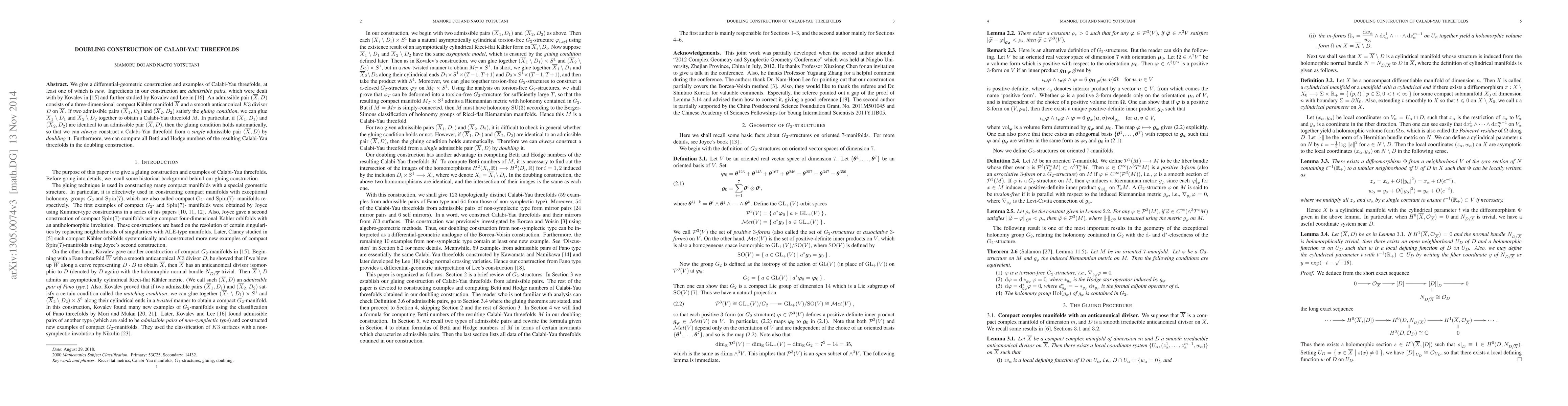 We give a differential-geometric construction and examples of Calabi-Yau threefolds, at least one of which is {\it{new}}. Ingredients in our construction are {\it admissible pairs}, which were dealt with by Kovalev in \cite{K03} and further studied by Kovalev and Lee in \cite{KL11}. An admissible pair $(\overline{X},D)$ consists of a three-dimensional compact K\"{a}hler manifold $\overline{X}$ and a smooth anticanonical $K3$ divisor $D$ on $\overline{X}$. If two admissible pairs $(\overline{X}_1,D_1)$ and $(\overline{X}_2,D_2)$ satisfy the {\it gluing condition}, we can glue $\overline{X}_1\setminus D_1$ and $\overline{X}_2\setminus D_2$ together to obtain a Calabi-Yau threefold $M$. In particular, if $(\overline{X}_1,D_1)$ and $(\overline{X}_2,D_2)$ are identical to an admissible pair $(\overline{X},D)$, then the gluing condition holds automatically, so that we can {\it always} construct a Calabi-Yau threefold from a {\it single} admissible pair $(\overline{X},D)$ by {\it doubling} it. Furthermore, we can compute all Betti and Hodge numbers of the resulting Calabi-Yau threefolds in the doubling construction.