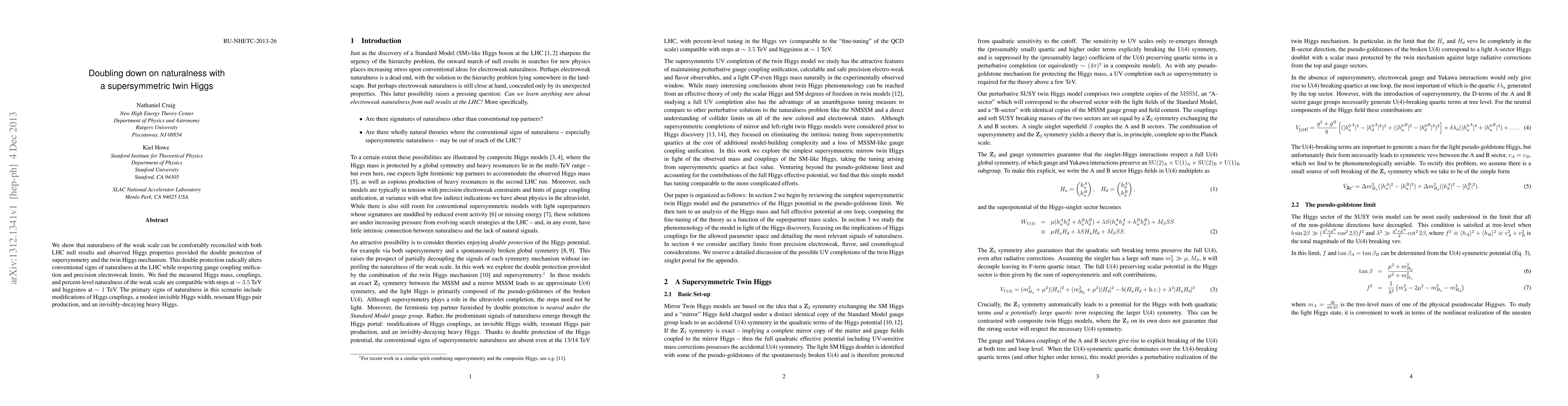 This paper explores how supersymmetry and the twin Higgs mechanism can reconcile naturalness at the weak scale despite null results from the LHC, proposing that stops around 3.5 TeV and higgsinos around 1 TeV are viable, with naturalness indicated by modified Higgs couplings and other specific phenomena.