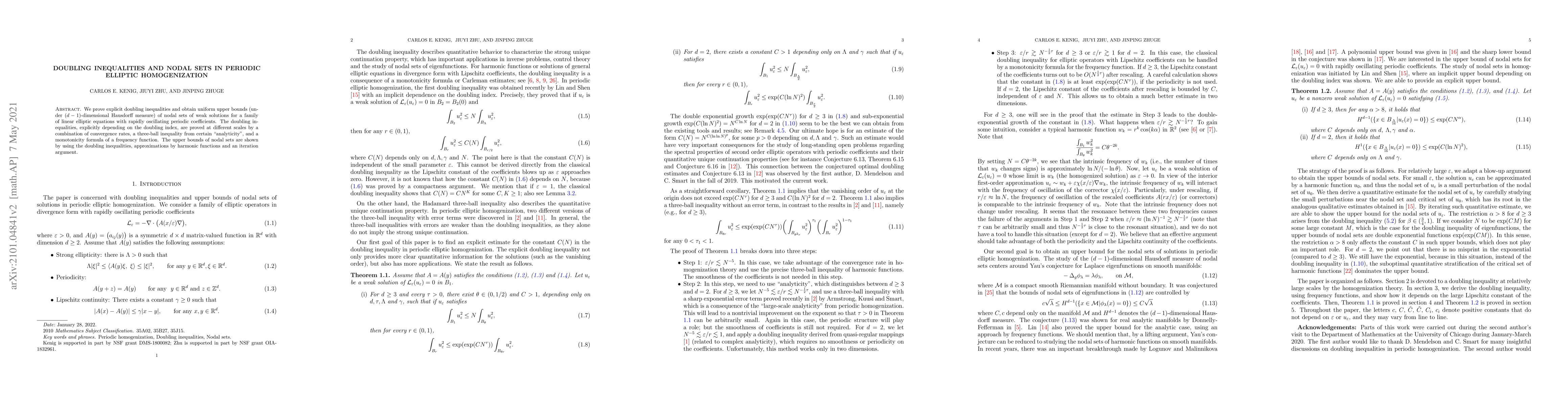 This research paper proves explicit doubling inequalities for nodal sets of weak solutions to linear elliptic equations with rapidly oscillating periodic coefficients, providing uniform upper bounds under certain conditions.