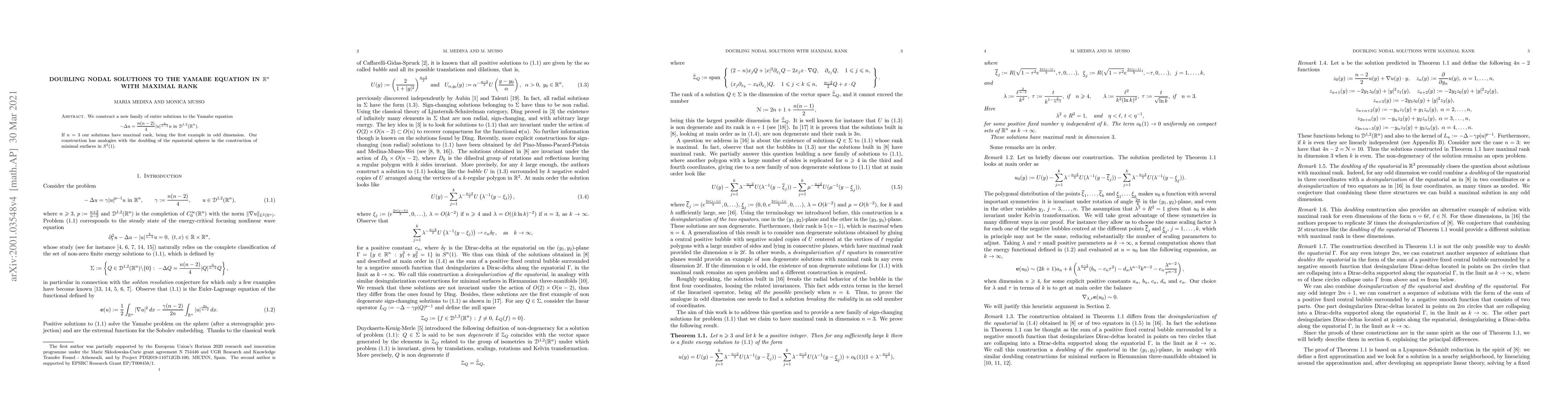 This paper constructs a new family of entire solutions to the Yamabe equation in $\mathbb{R}^n$, specifically focusing on solutions with maximal rank when $n=3$. The construction method draws parallels to the doubling of equatorial spheres in minimal surface theory.