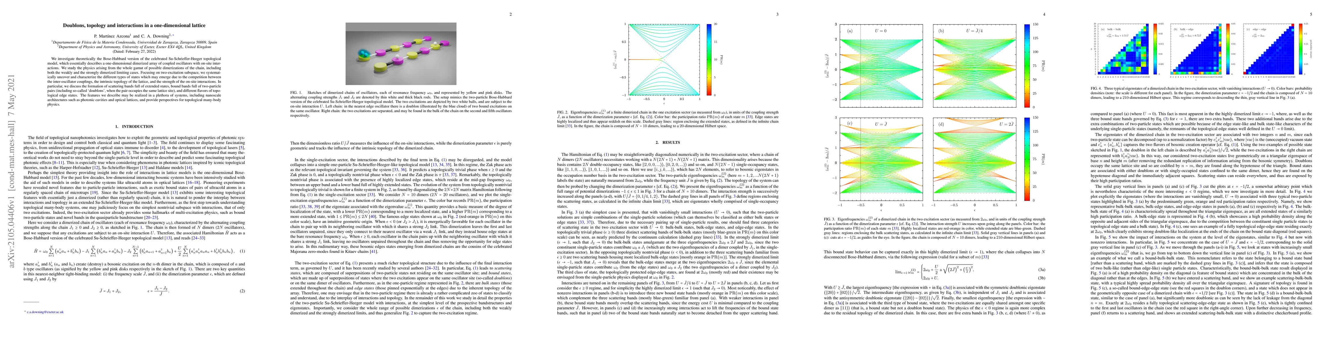 The paper presents a comprehensive analysis of the Bose-Hubbard model on a dimerized chain, characterizing the diverse eigenstates and their probability densities, and identifying novel topological states in the two-excitation sector.