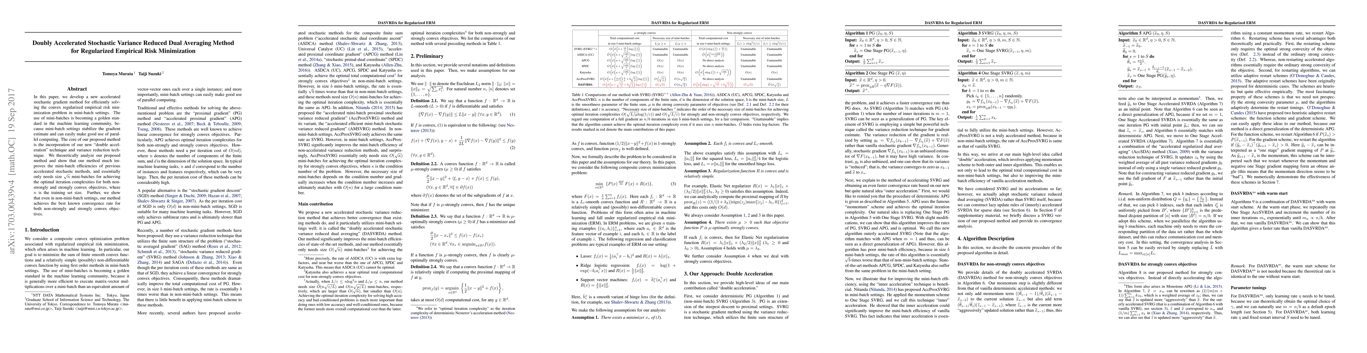 This paper introduces a doubly accelerated stochastic variance reduced dual averaging method for solving regularized empirical risk minimization problems in mini-batch settings. The proposed method combines double acceleration and variance reduction techniques to significantly improve mini-batch efficiency, achieving optimal iteration complexities with only $\sqrt{n}$ mini-batches, where $n$ is the training set size.