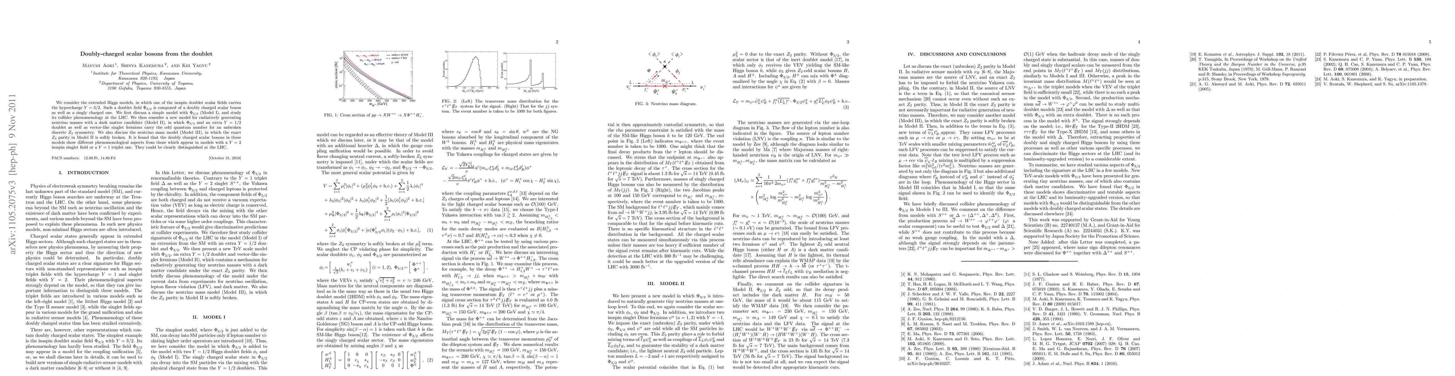 We consider the extended Higgs models, in which one of the isospin doublet scalar fields carries the hypercharge Y=3/2. Such a doublet field $\Phi_{3/2}$ is composed of a doubly charged scalar boson as well as a singly charged one. We first discuss a simple model with $\Phi_{3/2}$ (Model I), and study its collider phenomenology at the LHC. We then consider a new model for radiatively generating neutrino masses with a dark matter candidate (Model II), in which $\Phi_{3/2}$ and an extra Y=1/2 doublet as well as vector-like singlet fermions carry the odd quantum number for an unbroken discrete $Z_2$ symmetry. We also discuss the neutrino mass model (Model III), in which the exact $Z_2$ parity in Model II is softly broken. It is found that the doubly charged scalar bosons in these models show different phenomenological aspects from those which appear in models with a Y=2 isospin singlet field or a Y=1 triplet one. They could be clearly distinguished at the LHC.