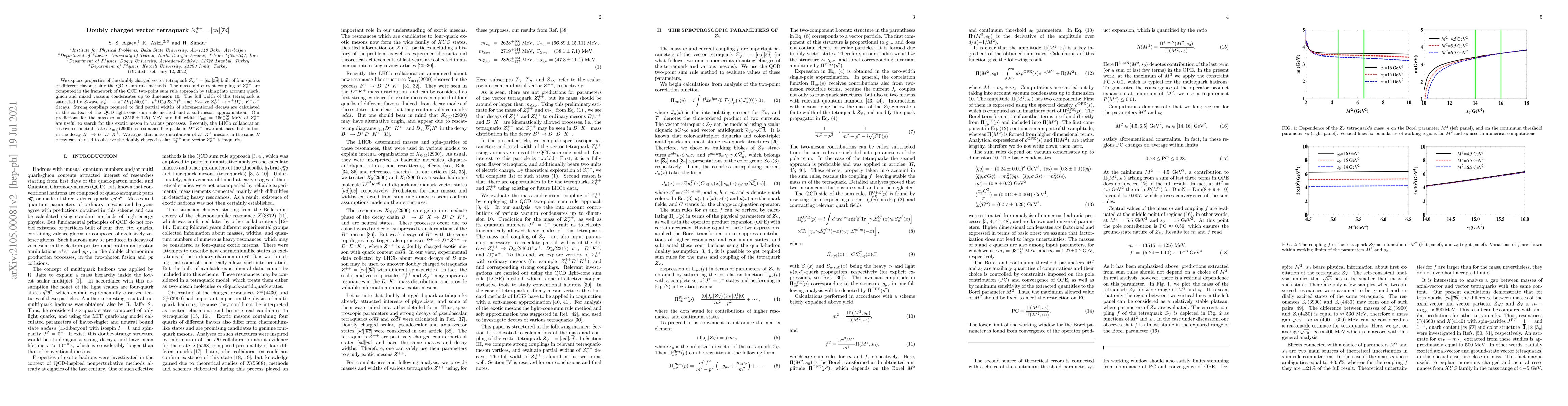 Researchers predicted the mass and width of a doubly charged vector tetraquark $Z_{ ext{V}}^{++}$ and its possible decays into other particles, offering insights for searching for this exotic meson in various processes.