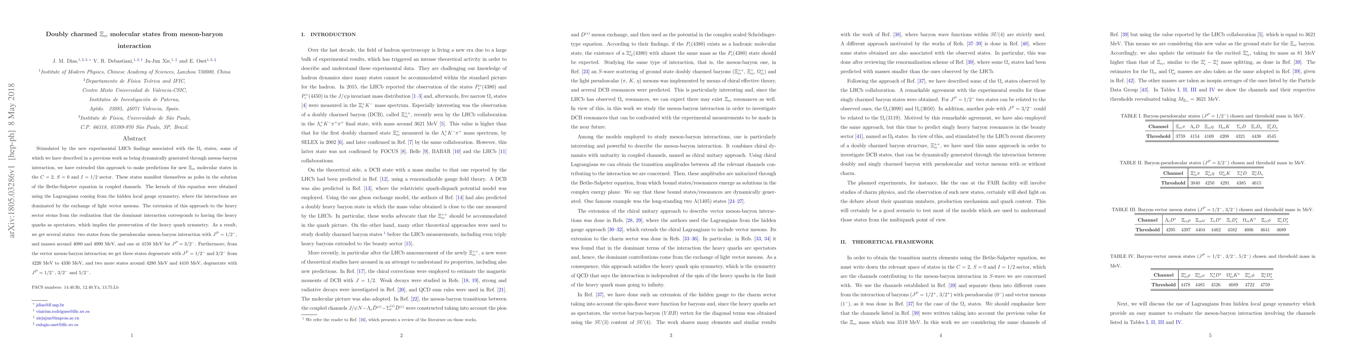Stimulated by the new experimental LHCb findings associated with the $\Omega_c$ states, some of which we have described in a previous work as being dynamically generated through meson-baryon interaction, we have extended this approach to make predictions for new $\Xi_{cc}$ molecular states in the $C=2$, $S=0$ and $I=1/2$ sector. These states manifest themselves as poles in the solution of the Bethe-Salpeter equation in coupled channels. The kernels of this equation were obtained using the Lagrangians coming from the hidden local gauge symmetry, where the interactions are dominated by the exchange of light vector mesons. The extension of this approach to the heavy sector stems from the realization that the dominant interaction corresponds to having the heavy quarks as spectators, which implies the preservation of the heavy quark symmetry. As a result, we get several states: two states from the pseudoscalar meson-baryon interaction with $J^P=1/2^-$, and masses around $4080$ and $4090$ MeV, and one at $4150$ MeV for $J^P=3/2^-$. Furthermore, from the vector meson-baryon interaction we get three states degenerate with $J^P=1/2^-$ and $3/2^-$ from $4220$ MeV to $4330$ MeV, and two more states around $4280$ MeV and $4410$ MeV, degenerate with $J^P=1/2^-,\, 3/2^-$ and $5/2^-$.