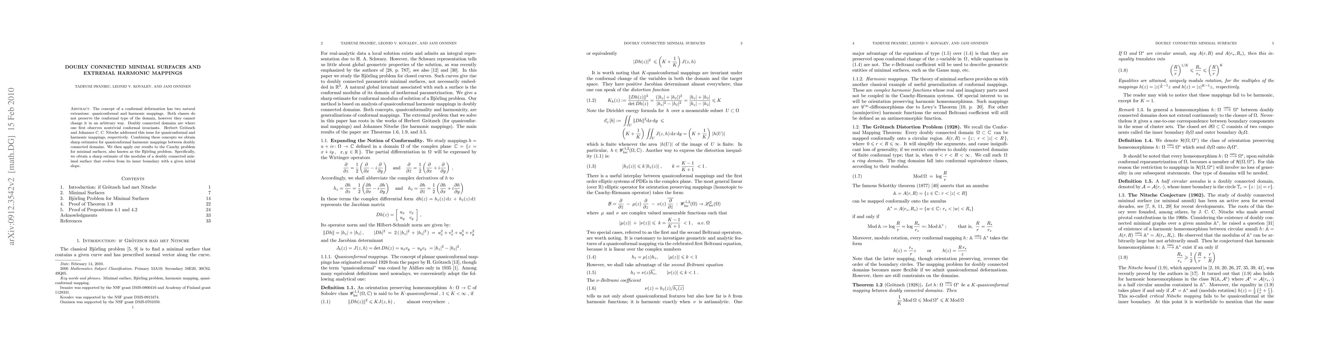 The concept of a conformal deformation has two natural extensions: quasiconformal and harmonic mappings. Both classes do not preserve the conformal type of the domain, however they cannot change it in an arbitrary way. Doubly connected domains are where one first observes nontrivial conformal invariants. Herbert Groetzsch and Johannes C. C. Nitsche addressed this issue for quasiconformal and harmonic mappings, respectively. Combining these concepts we obtain sharp estimates for quasiconformal harmonic mappings between doubly connected domains. We then apply our results to the Cauchy problem for minimal surfaces, also known as the Bjorling problem. Specifically, we obtain a sharp estimate of the modulus of a doubly connected minimal surface that evolves from its inner boundary with a given initial slope.