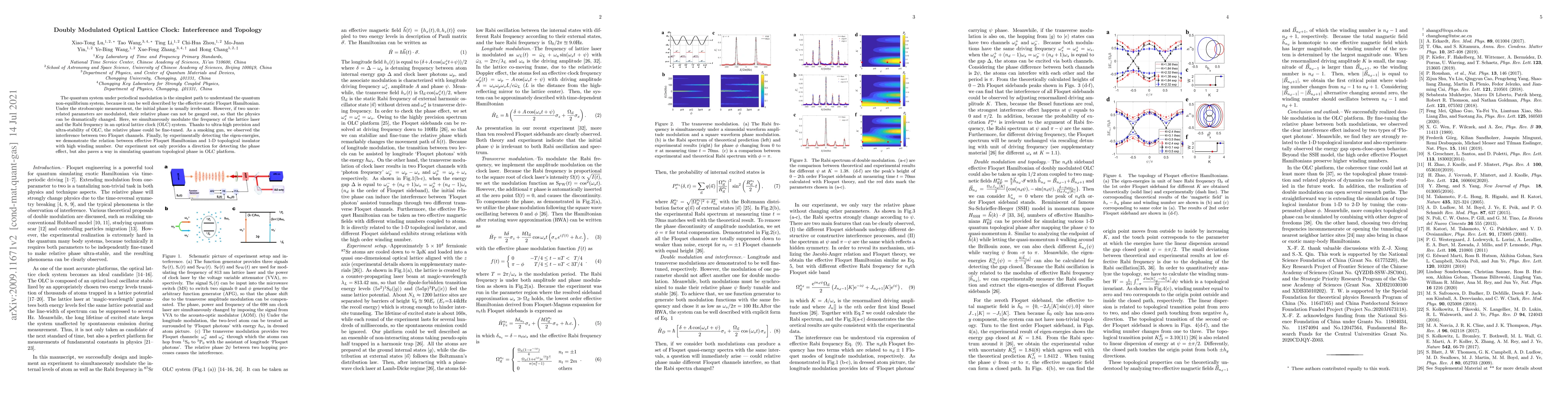 The quantum system under periodical modulation is the simplest path to understand the quantum non-equilibrium system, because it can be well described by the effective static Floquet Hamiltonian. Under the stroboscopic measurement, the initial phase is usually irrelevant. However, if two uncorrelated parameters are modulated, their relative phase can not be gauged out, so that the physics can be dramatically changed. Here, we simultaneously modulate the frequency of the lattice laser and the Rabi frequency in an optical lattice clock (OLC) system. Thanks to ultra-high precision and ultra-stability of OLC, the relative phase could be fine-tuned. As a smoking gun, we observed the interference between two Floquet channels. Finally, by experimentally detecting the eigen-energies, we demonstrate the relation between effective Floquet Hamiltonian and 1-D topological insulator with high winding number. Our experiment not only provides a direction for detecting the phase effect, but also paves a way in simulating quantum topological phase in OLC platform.