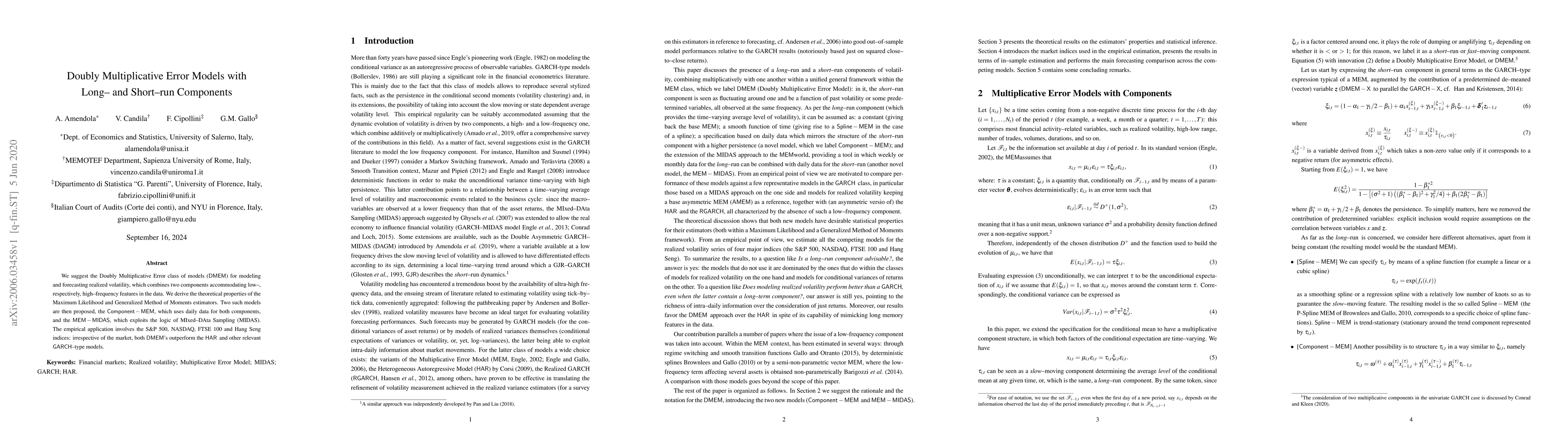 A new error model called Doubly Multiplicative Error class (DMEM) is proposed for modeling realized volatility, outperforming traditional GARCH-type models in empirical applications across various markets.
