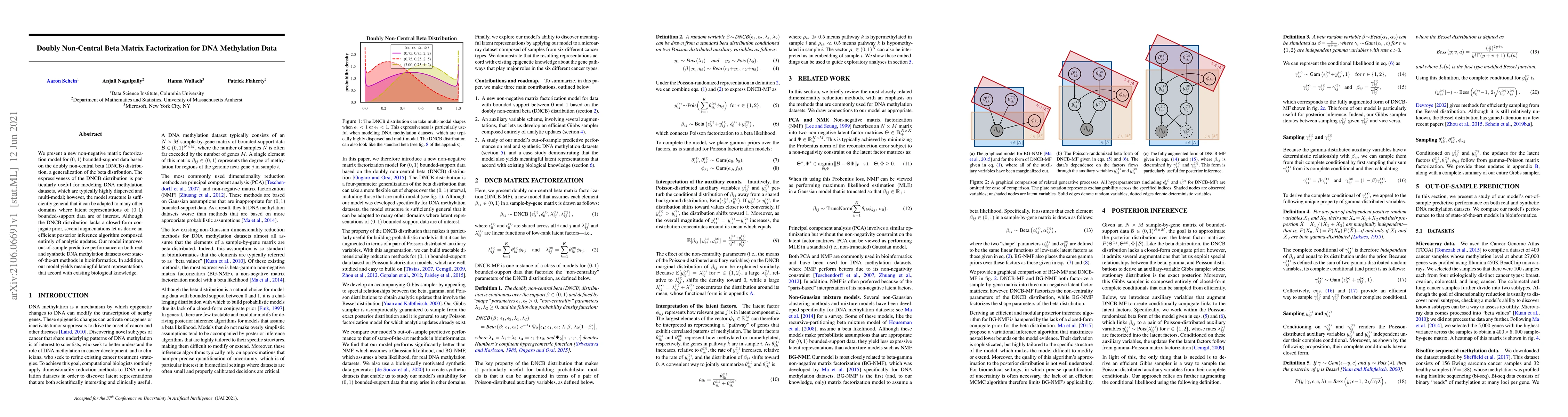 This paper introduces a novel non-negative matrix factorization model based on the doubly non-central beta distribution for analyzing DNA methylation data, which is highly dispersed and multi-modal. The model provides improved predictive performance and meaningful latent representations, outperforming existing methods in bioinformatics.