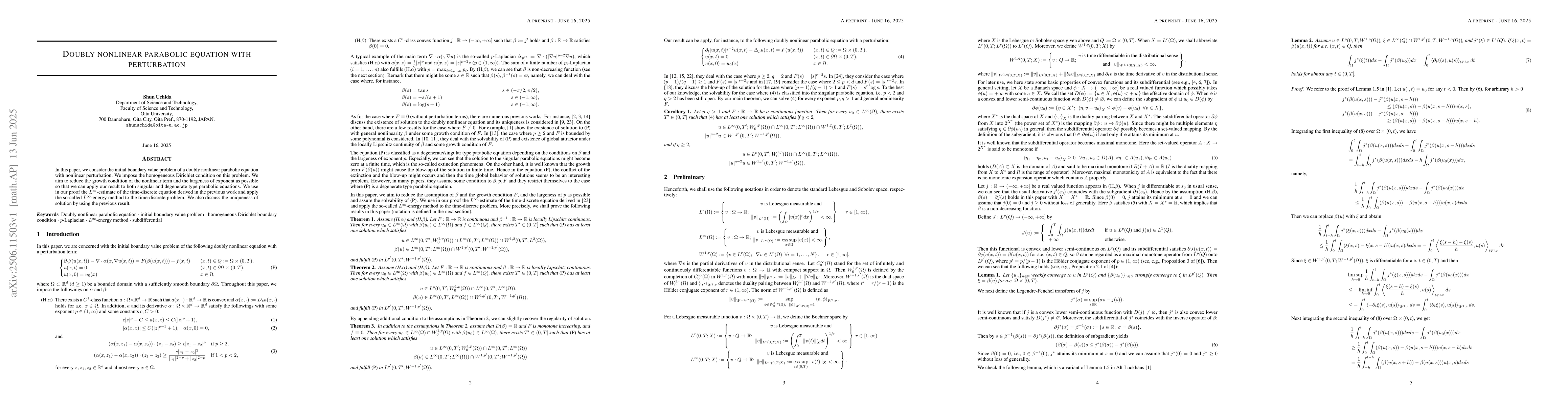 In this paper, we consider the initial boundary value problem of a doubly nonlinear parabolic equation with nonlinear perturbation. We impose the homogeneous Dirichlet condition on this problem. We aim to reduce the growth condition of the nonlinear term and the largeness of exponent as possible so that we can apply our result to both singular and degenerate type parabolic equations. We use in our proof the $L ^{\infty }$-estimate of the time-discrete equation derived in the previous work and apply the so-called $L ^{\infty }$-energy method to the time-discrete problem. We also discuss the uniqueness of solution by using the previous result.