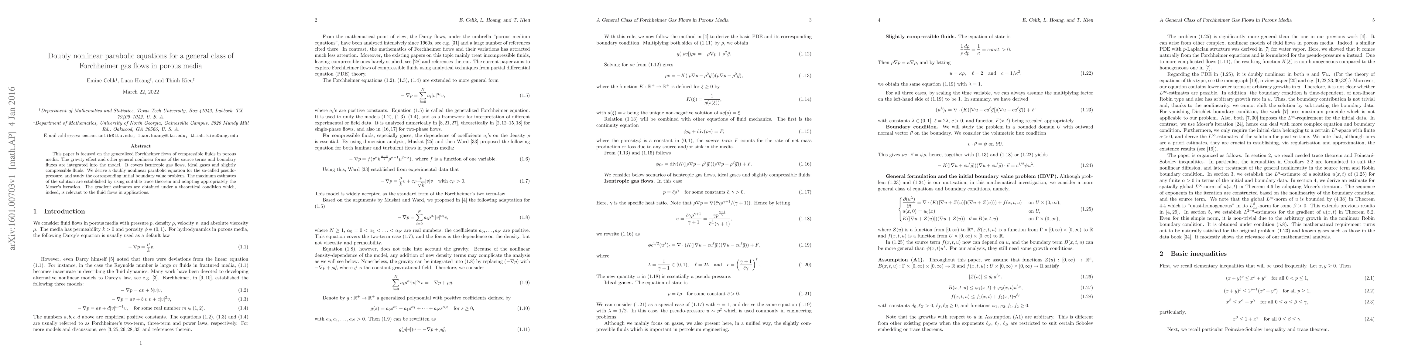 This paper develops a doubly nonlinear parabolic equation for generalized Forchheimer gas flows in porous media, incorporating gravity and nonlinear source terms. It establishes maximum and gradient estimates for the pseudo-pressure solution using trace theorems and Moser's iteration.