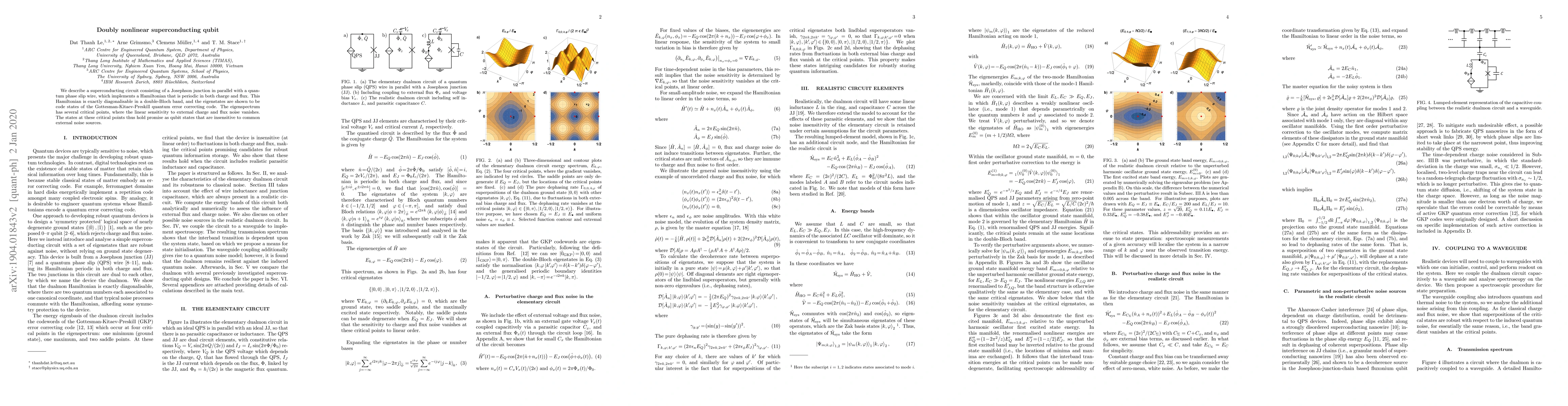 We describe a superconducting circuit consisting of a Josephson junction in parallel with a quantum phase slip wire, which implements a Hamiltonian that is periodic in both charge and flux. This Hamiltonian is exactly diagonalisable in a double-Bloch band, and the eigenstates are shown to be code states of the Gottesman-Kitaev-Preskill quantum error correcting code. The eigenspectrum has several critical points, where the linear sensitivity to external charge and flux noise vanishes. The states at these critical points thus hold promise as qubit states that are insensitive to external noise sources.