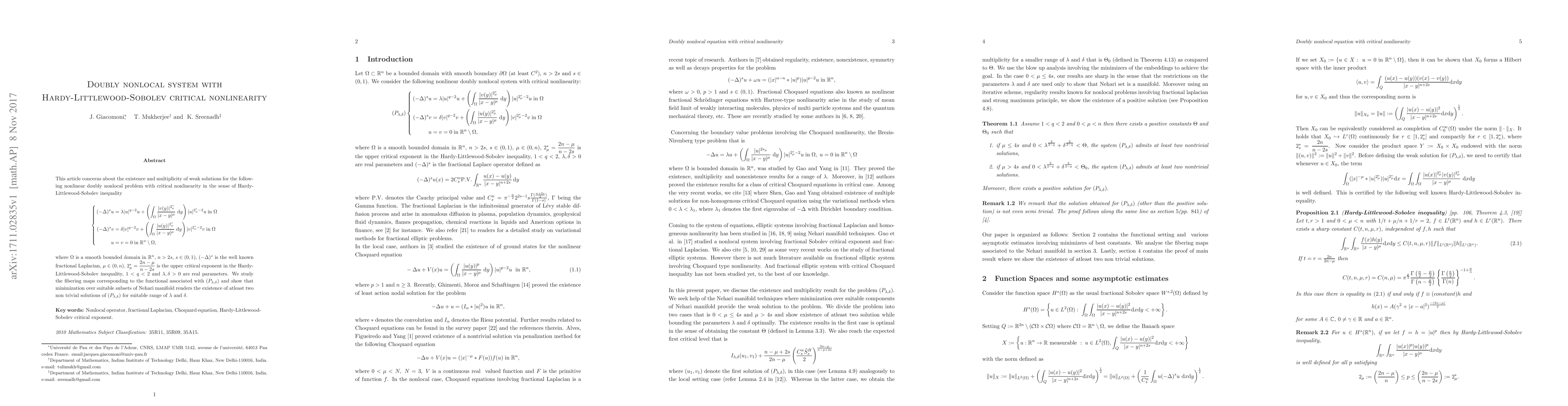 for the following nonlinear doubly nonlocal problem with critical nonlinearity