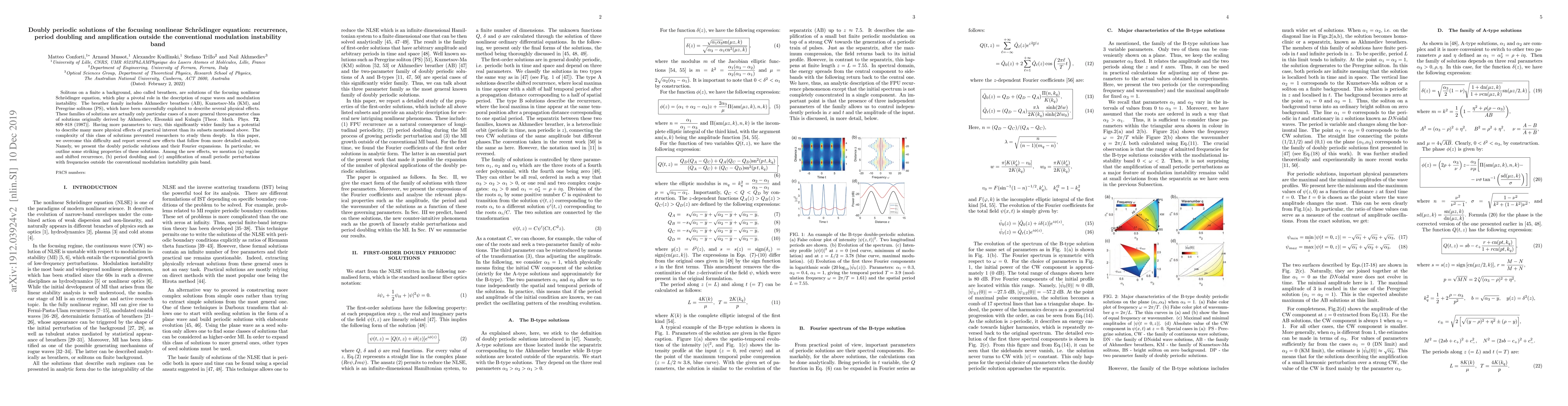 Solitons on a finite a background, also called breathers, are solutions of the focusing nonlinear Schr\"odinger equation, which play a pivotal role in the description of rogue waves and modulation instability. The breather family includes Akhmediev breathers (AB), Kuznetsov-Ma (KM), and Peregrine solitons (PS), which have been successfully exploited to describe several physical effects. These families of solutions are actually only particular cases of a more general three-parameter class of solutions originally derived by Akhmediev, Eleonskii and Kulagin [Theor. Math. Phys. {\bf 72}, 809--818 (1987)]. Having more parameters to vary, this significantly wider family has a potential to describe many more physical effects of practical interest than its subsets mentioned above. The complexity of this class of solutions prevented researchers to study them deeply. In this paper, we overcome this difficulty and report several new effects that follow from more detailed analysis. Namely, we present the doubly periodic solutions and their Fourier expansions. In particular, we outline some striking properties of these solutions. Among the new effects, we mention (a) regular and shifted recurrence, (b) period doubling and (c) amplification of small periodic perturbations with frequencies outside the conventional modulation instability gain band.