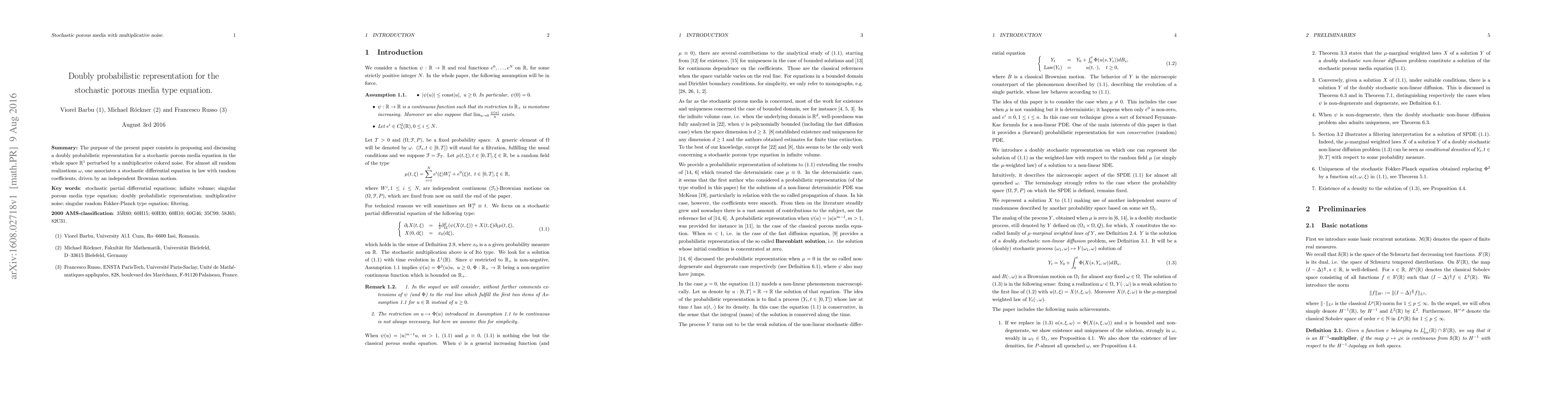 This paper introduces a doubly probabilistic representation for a stochastic porous media equation in one-dimensional space (R^1), incorporating multiplicative colored noise. For each random parameterization (omega), a stochastic differential equation with random coefficients and an independent Brownian motion is established.