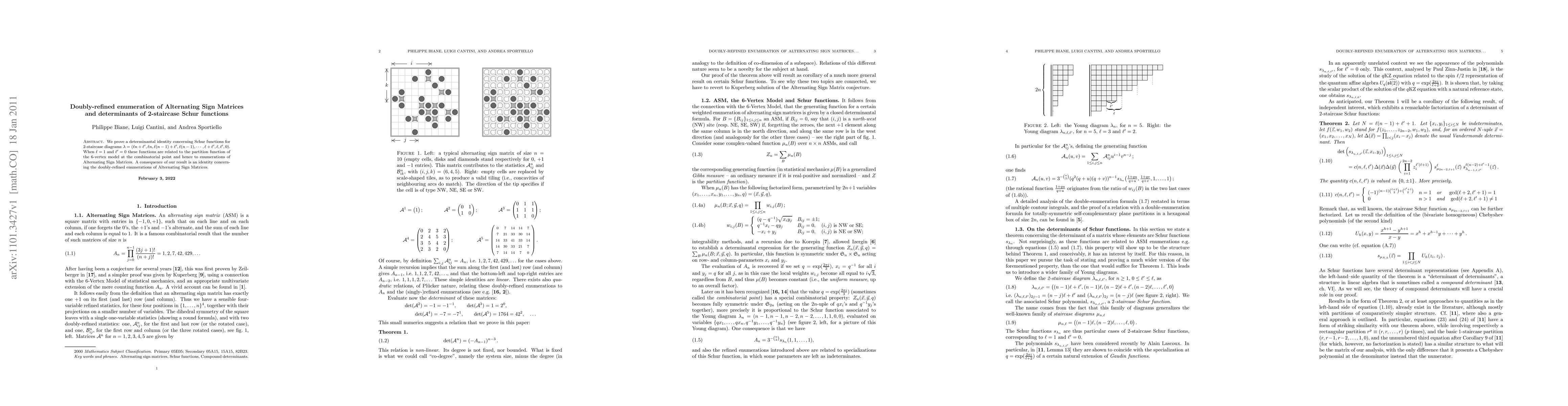 The paper establishes a determinantal identity for 2-staircase Schur functions and demonstrates a connection to the partition function of the 6-vertex model, ultimately leading to a doubly-refined enumeration of Alternating Sign Matrices. The result provides an identity that links these functions to the combinatorial point.