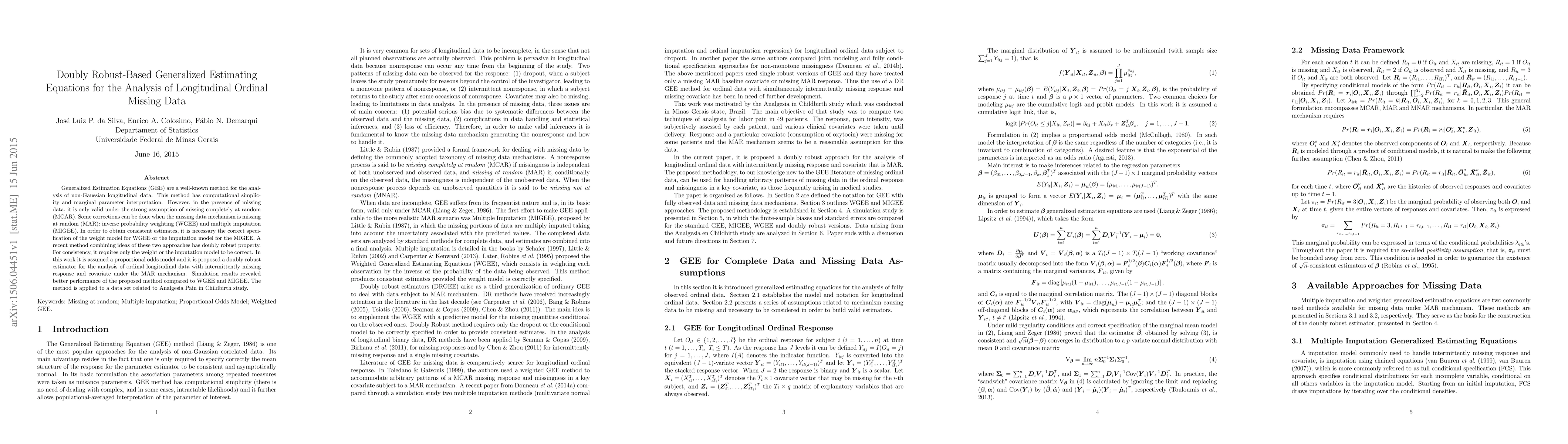 This paper proposes a doubly robust estimator based on Generalized Estimating Equations for analyzing longitudinal ordinal data with intermittently missing responses and covariates under the MAR mechanism. Simulation results show that the method outperforms inverse probability weighting and multiple imputation approaches.