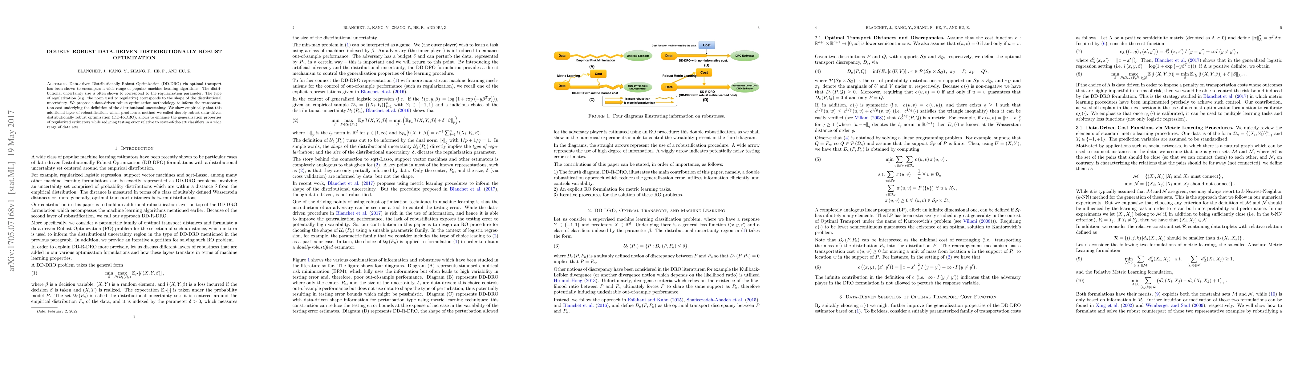 The paper proposes a doubly robust data-driven distributionally robust optimization (DD-R-DRO) methodology that informs the transportation cost underlying DD-DRO via optimal transport, enhancing generalization properties and reducing testing error.