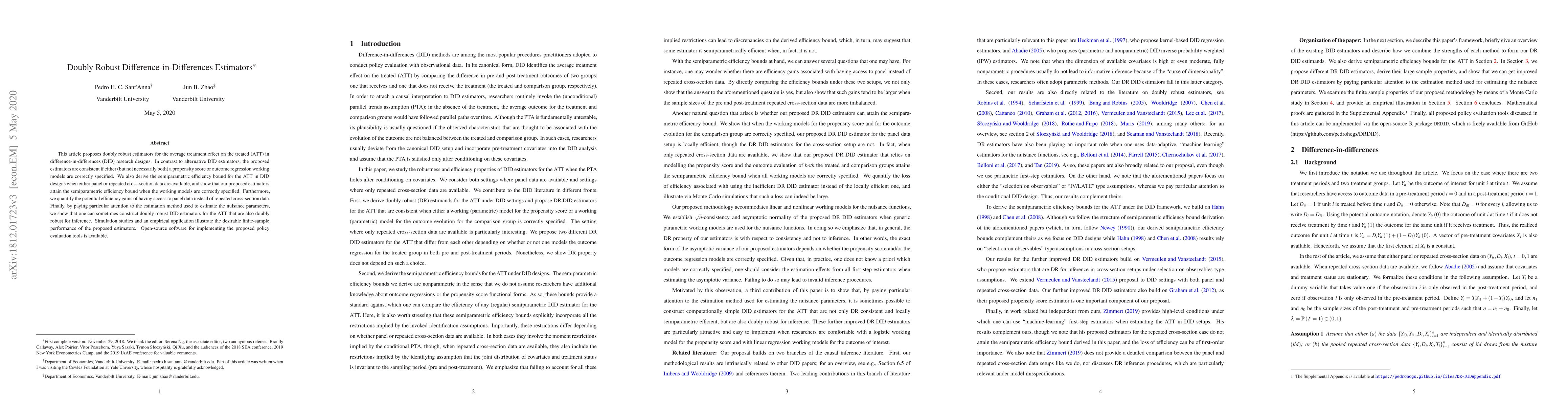 Yuya Sasaki, Yukun Ma, Pedro H. C. Sant'Anna et al.