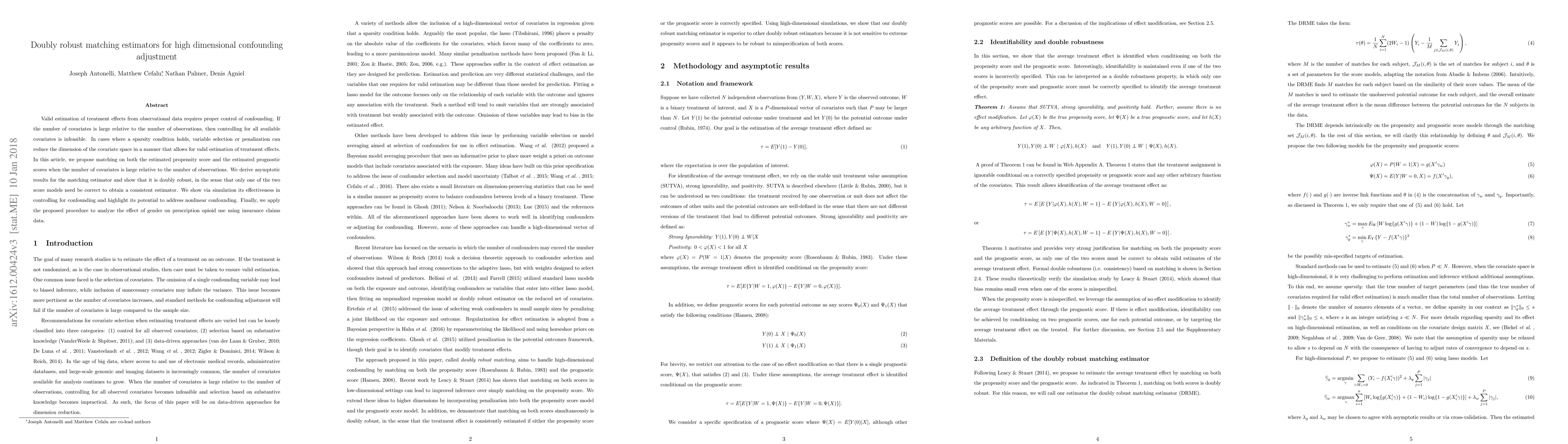 This paper proposes a doubly robust matching estimator to control for confounding in high-dimensional observational data, showing its effectiveness through simulation and real-world application in analyzing the effect of gender on prescription opioid use.