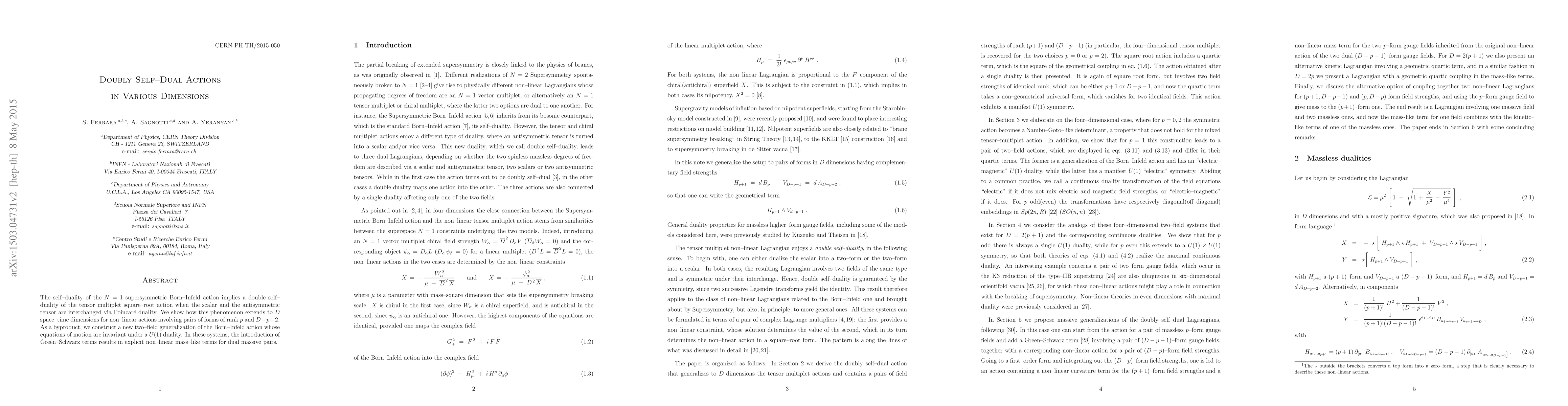 The self-duality of the N=1 supersymmetric Born--Infeld action implies a double self-duality of the tensor multiplet square-root action when the scalar and the antisymmetric tensor are interchanged via Poincare' duality. We show how this phenomenon extends to D space-time dimensions for non-linear actions involving pairs of forms of rank p and D-p-2. As a byproduct, we construct a new two-field generalization of the Born-Infeld action whose equations of motion are invariant under a U(1) duality. In these systems, the introduction of Green-Schwarz terms results in explicit non-linear mass-like terms for dual massive pairs.