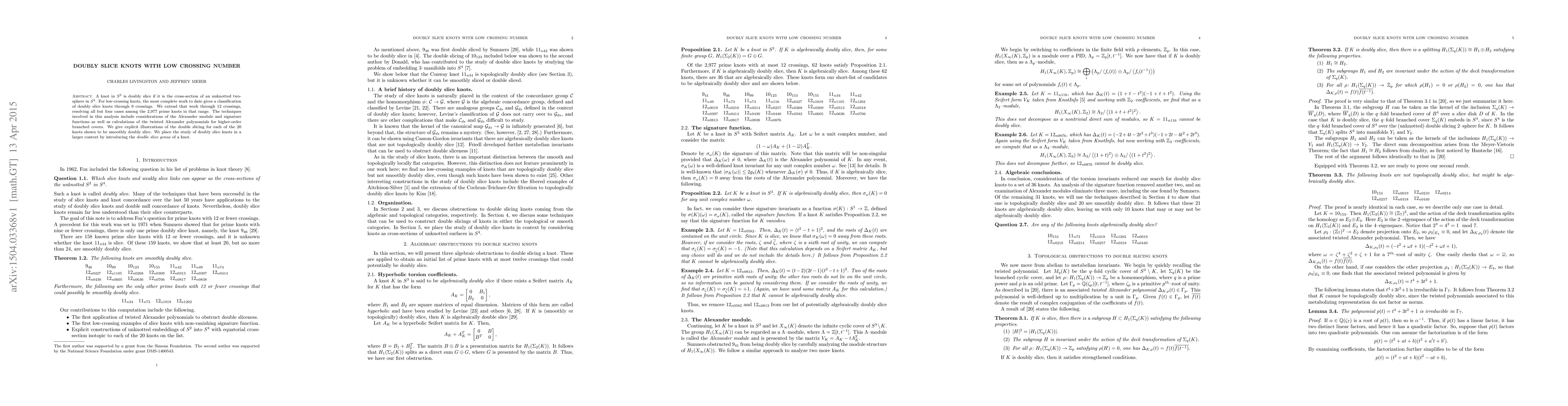 A knot in the three-sphere is doubly slice if it is the cross-section of an unknotted two-sphere in the four-sphere. For low-crossing knots, the most complete work to date gives a classification of doubly slice knots through 9 crossings. We extend that work through 12 crossings, resolving all but four cases among the 2,977 prime knots in that range. The techniques involved in this analysis include considerations of the Alexander module and signature functions as well as calculations of the twisted Alexander polynomials for higher-order branched covers. We give explicit illustrations of the double slicing for each of the 20 knots shown to be smoothly doubly slice. We place the study of doubly slice knots in a larger context by introducing the double slice genus of a knot.