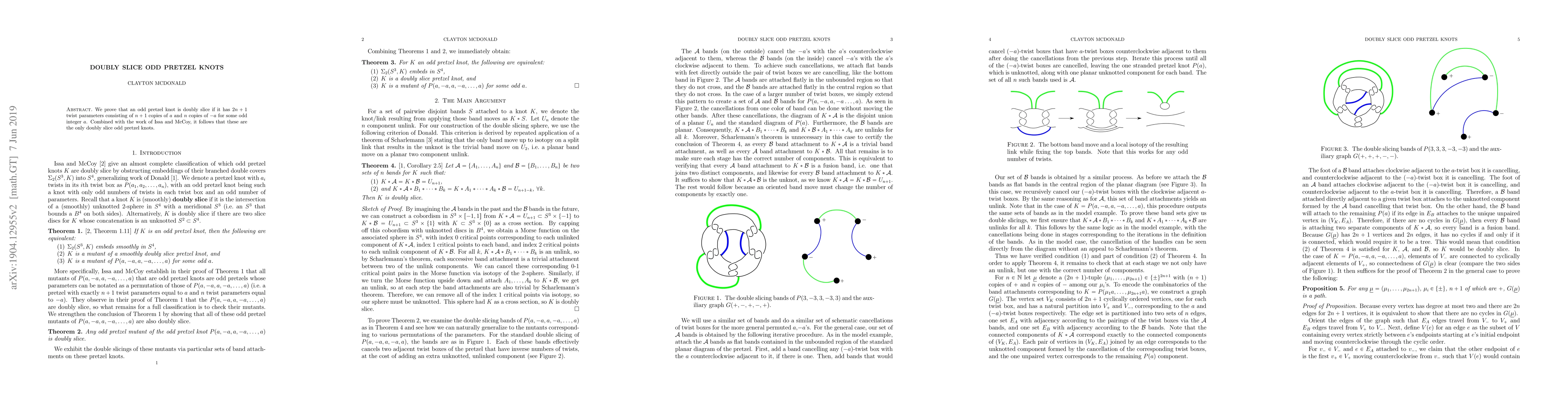 This paper proves that odd pretzel knots with $2n+1$ twist parameters, where $n+1$ are $a$ and $n$ are $-a$ for an odd integer $a$, are doubly slice. Together with previous results, it concludes that these knots are the only doubly slice odd pretzel knots.